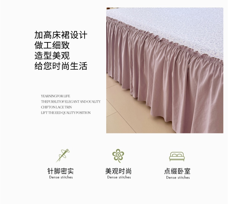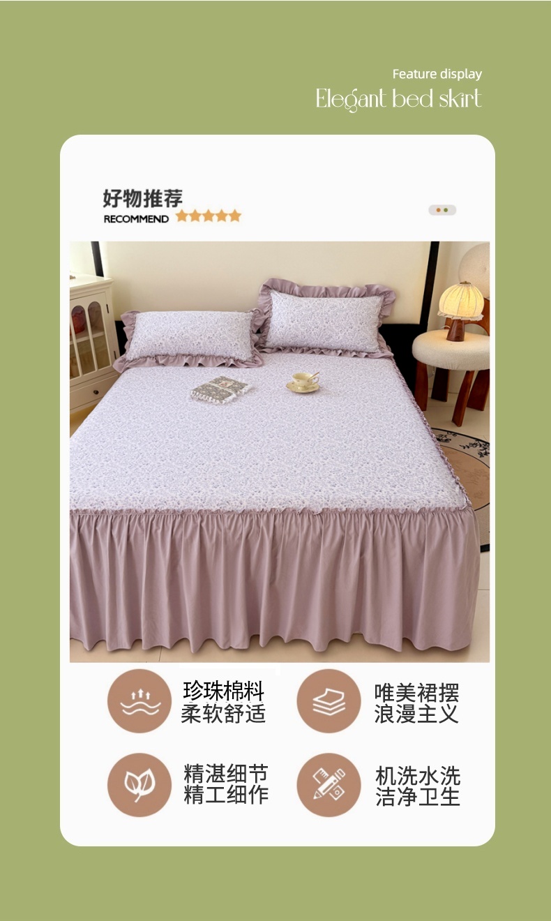 商品名称:圣比熊 2025新款水洗珍珠棉单件床裙双层纱床垫保护罩三件套 浅影摇曳-紫