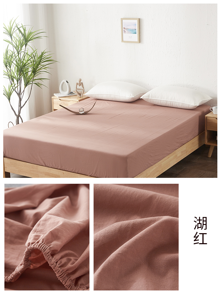 商品名称:贝尔 PELLHOME 日式全棉纯棉水洗棉床笠床罩男士简约蓝北欧床垫保护防滑固定单件春节不打烊 湖红