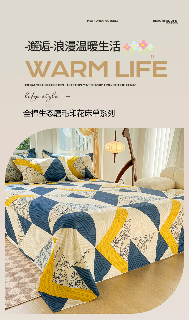 • 91家纺网 家纺一手货源 找家纺 眠博士 2025新款全棉混纺生态磨毛印花单床单 磨毛床单-绿叶秋风