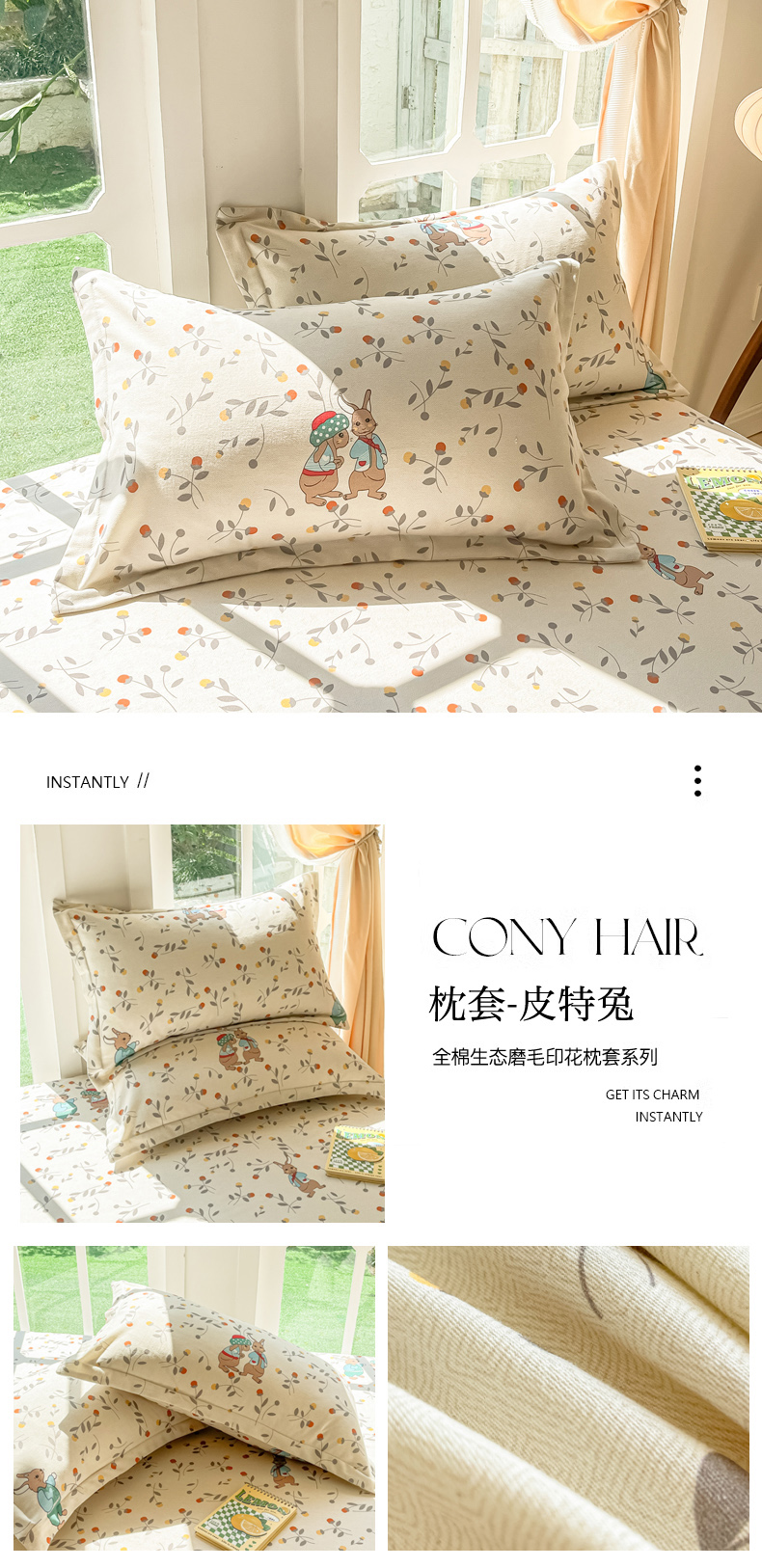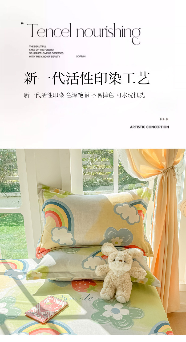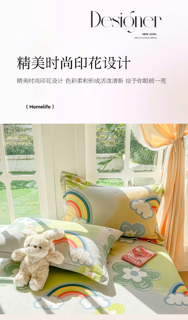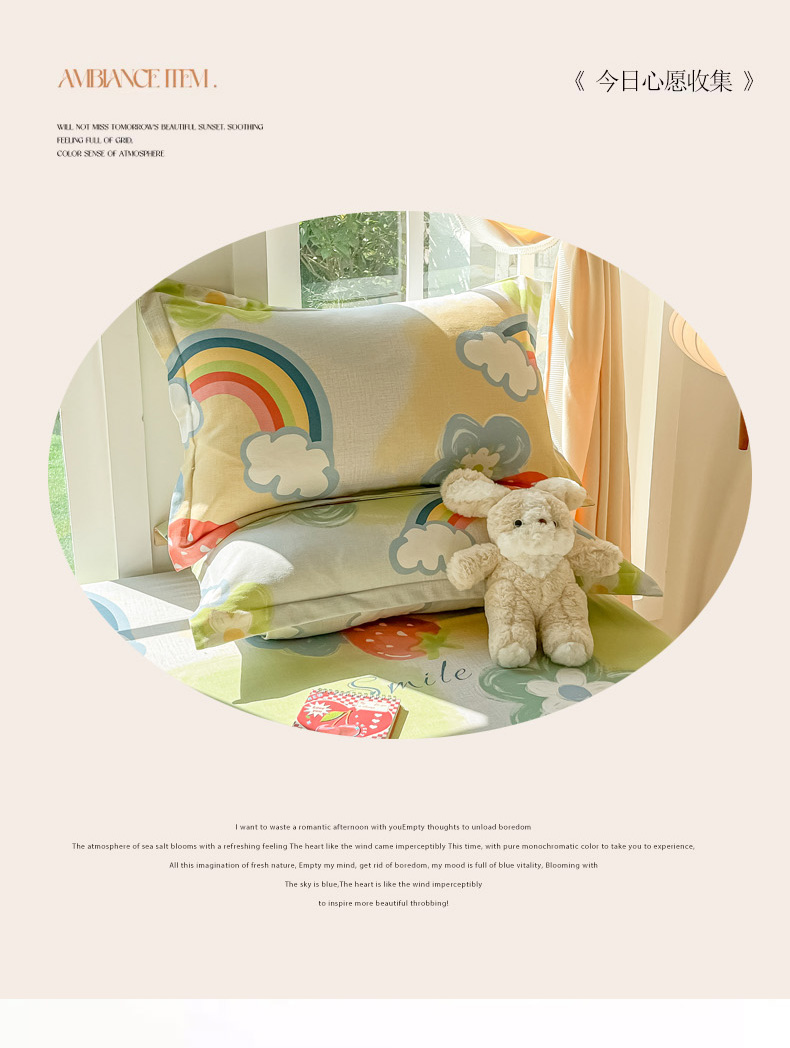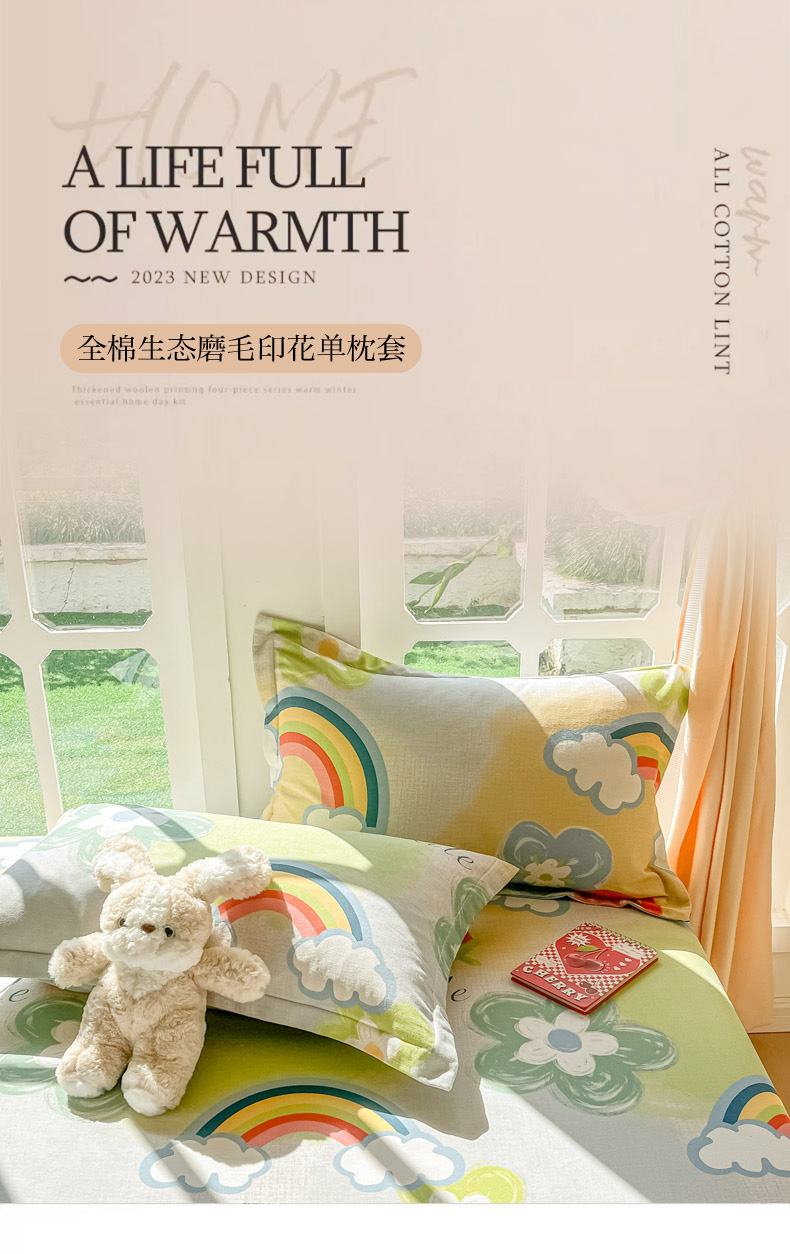 商品名称:眠博士 2025新款全棉混纺生态磨毛印花单枕套 磨毛枕套-彩虹草莓