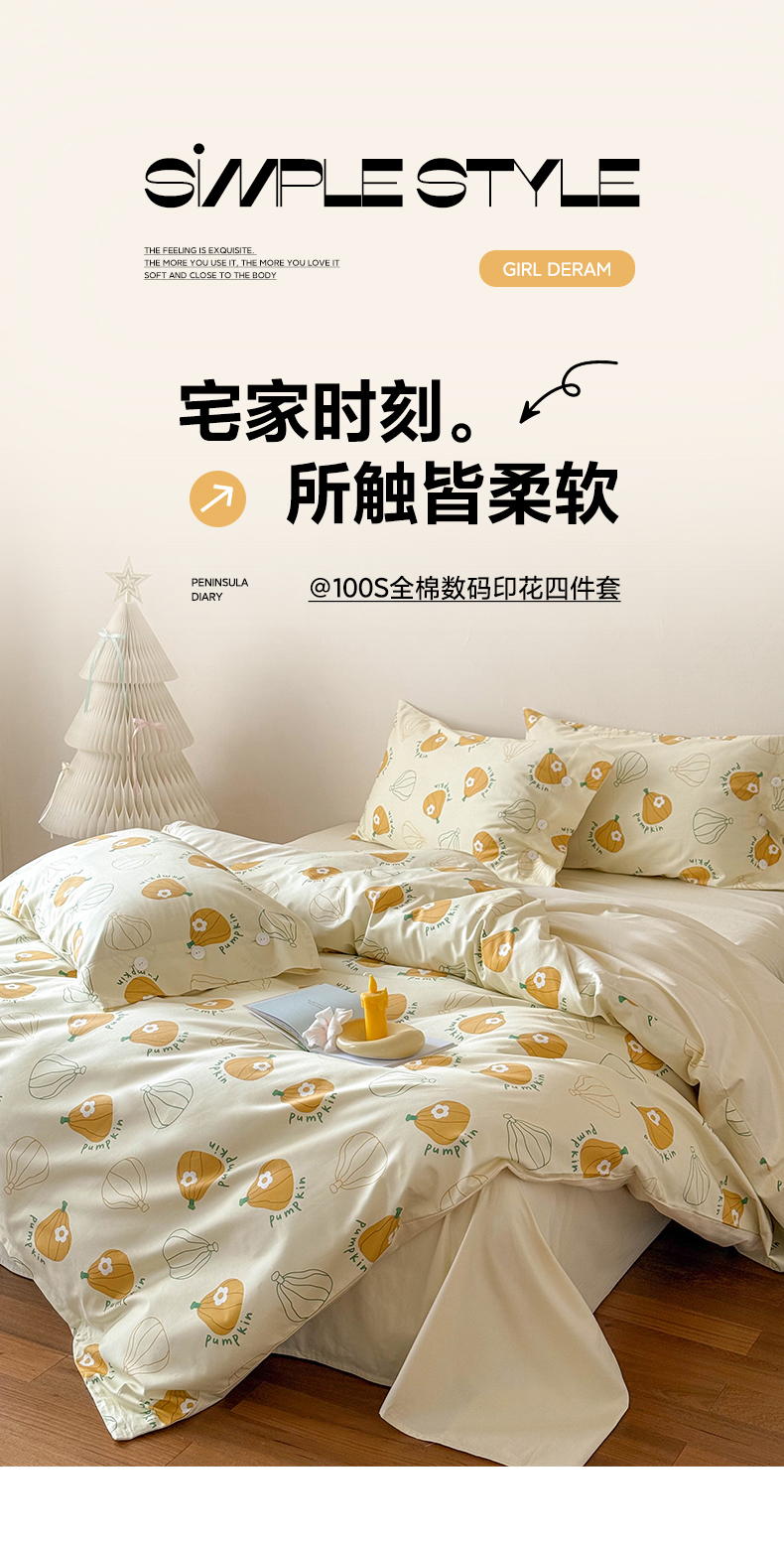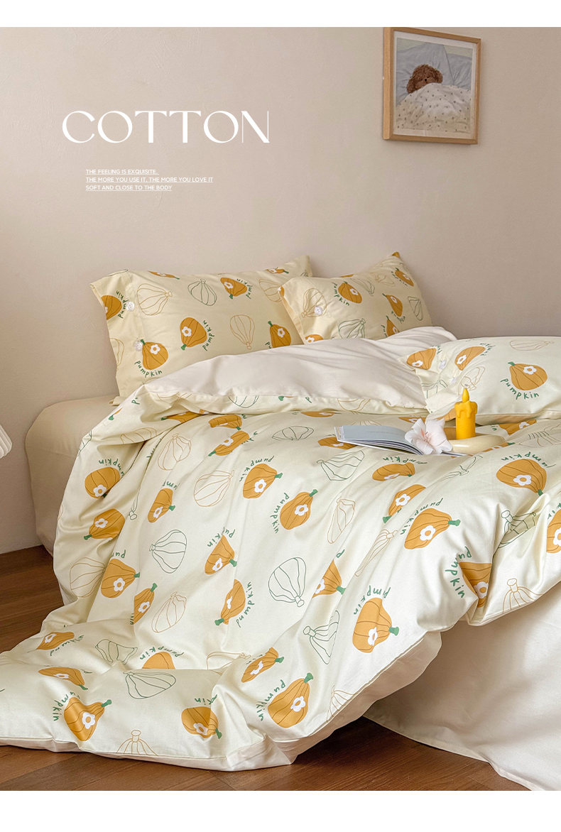 当前位置: 91家纺网 > 商品网购 > 床品套件 > 四件套 > 全棉普通四件套 > (总)华超针织 2025新款100S全棉纯棉数码印花四件套-金瓜拉多
