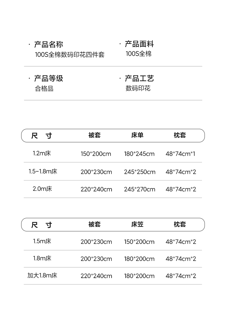 【床笠款】1.8四件套-被套220x240 | ¥200.00 |