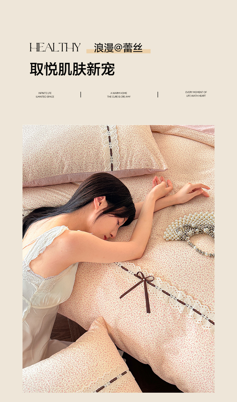 (总)2025新款小清新全棉纯棉四件套-若溪,麦田绿,茉莉奶白,霞光紫,杏花粉,雪山粉