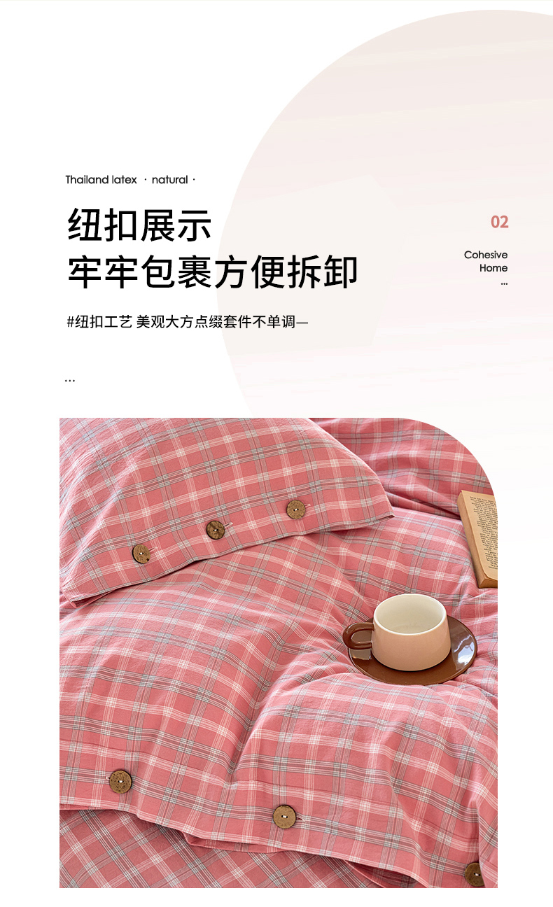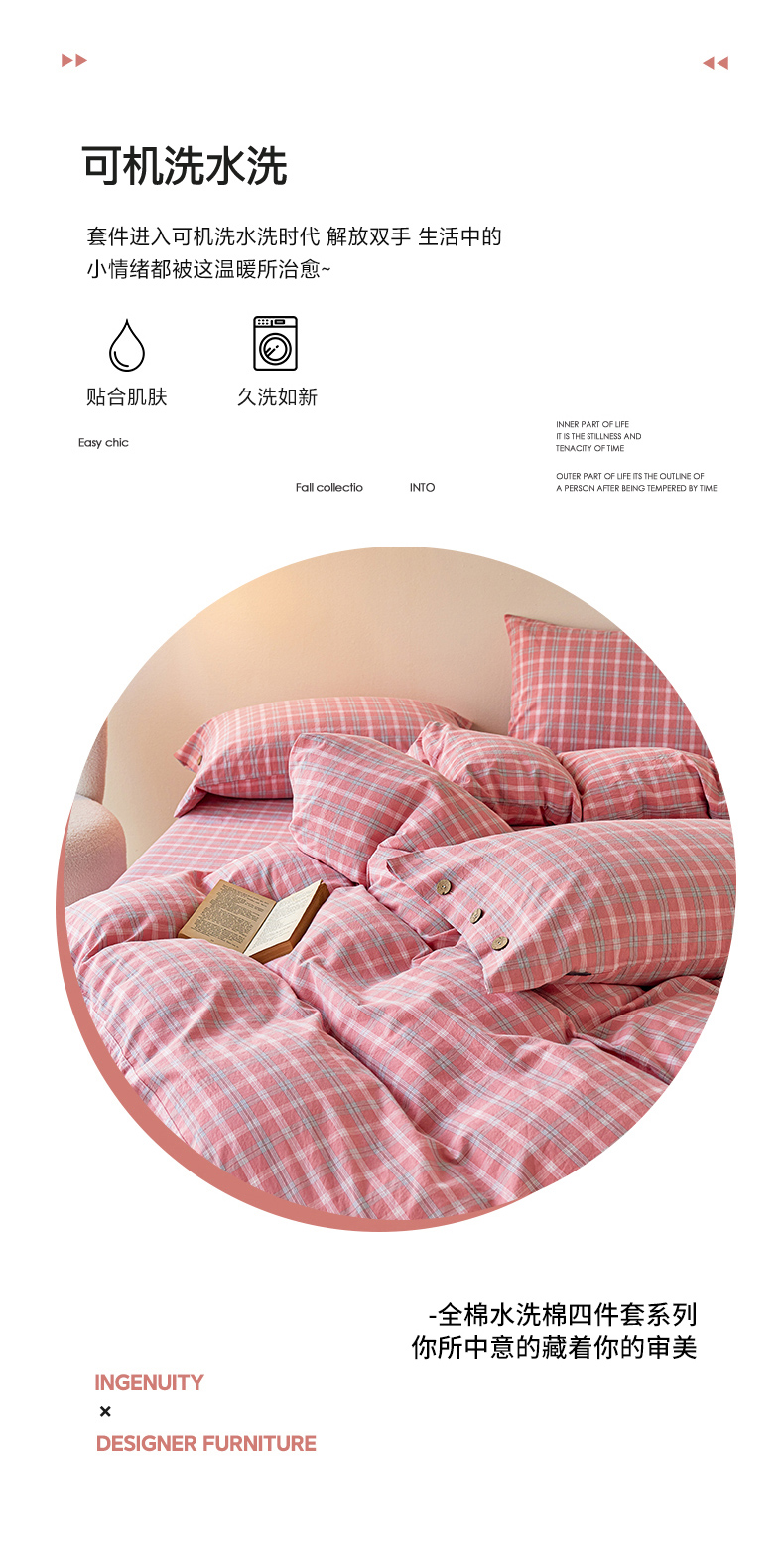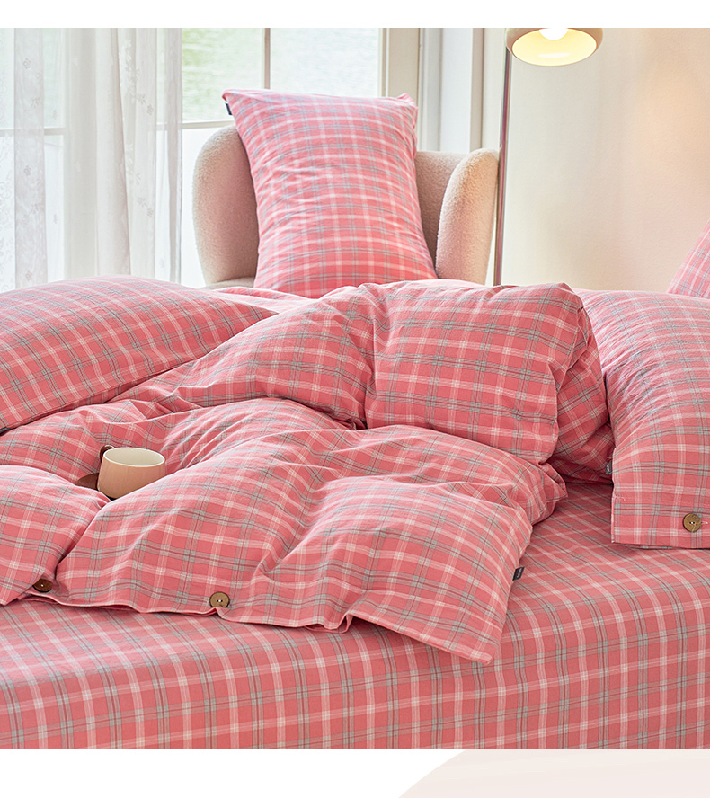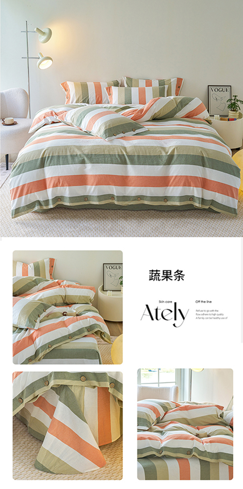 当前位置: 91家纺网 > 商品网购 > 床品套件 > 四件套 > 水洗棉四件套 > 贝尔 PELLHOME 全棉纽扣色织水洗棉格子四件套(可抖音代发) 蔬果条