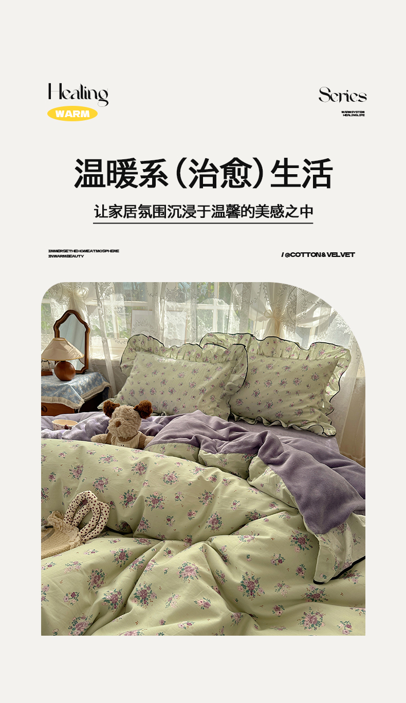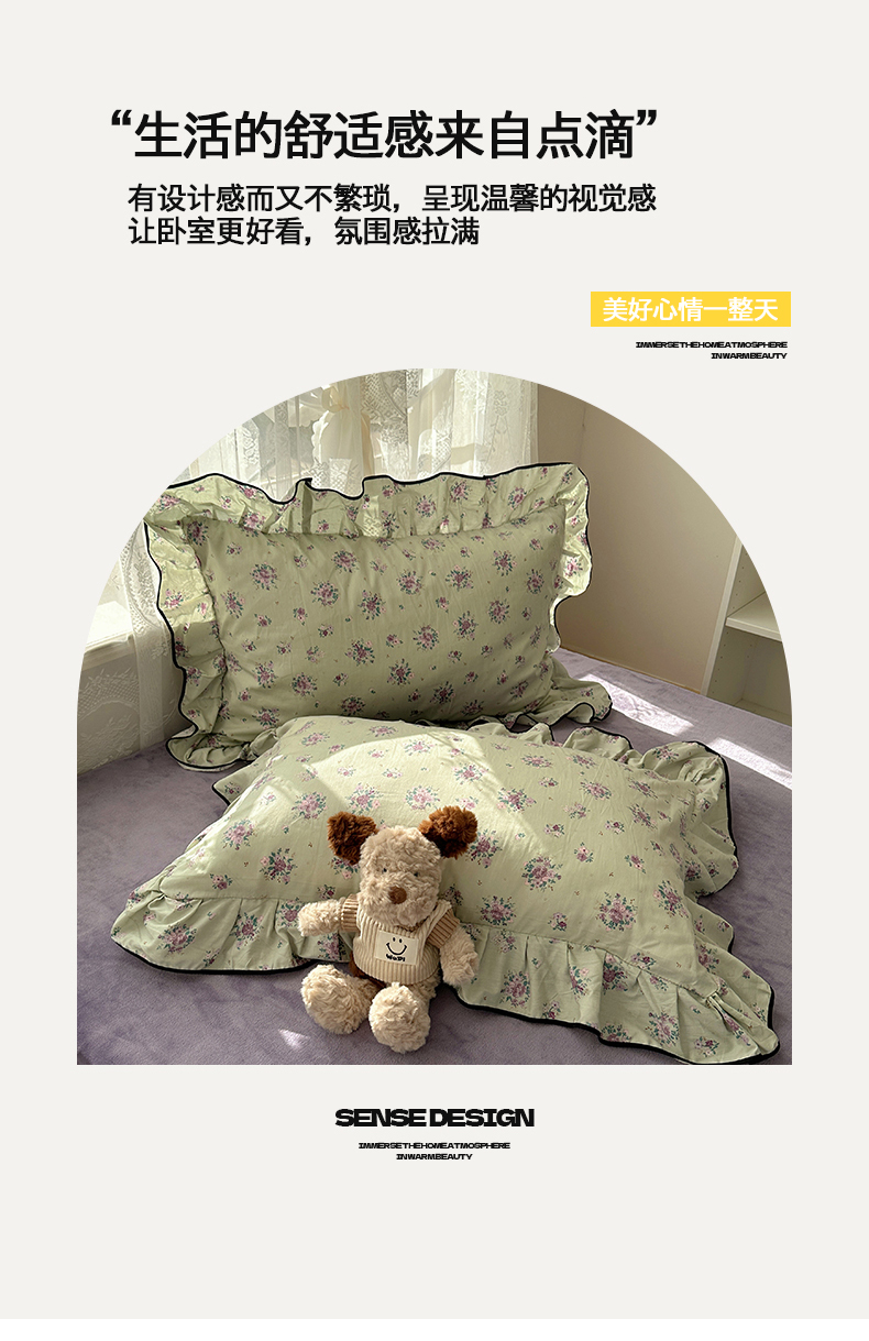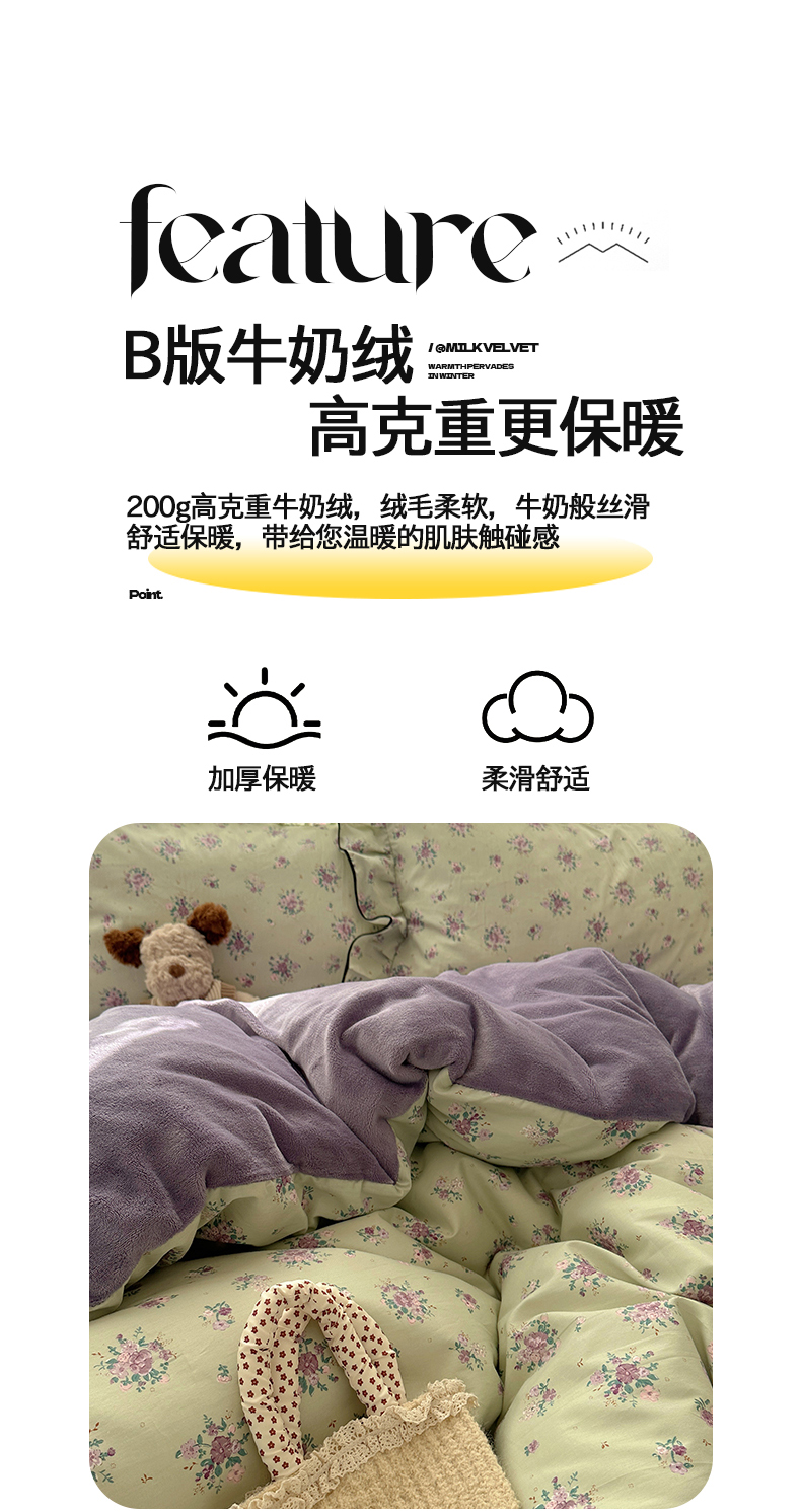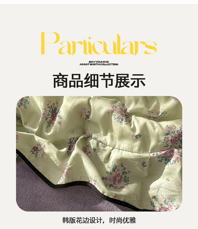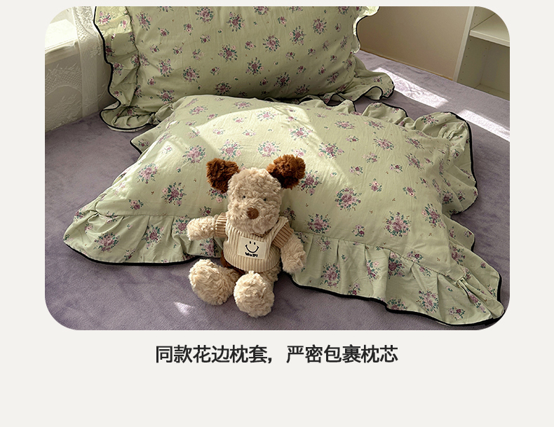 商品名称:桃子家居 2025新款A类纯棉数码印花法式碎花棉加绒韩版花边碎花加厚牛奶绒四件套 棉加绒-花边浮影