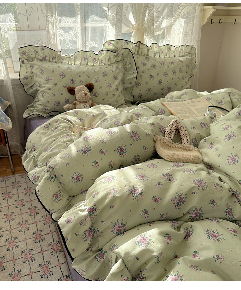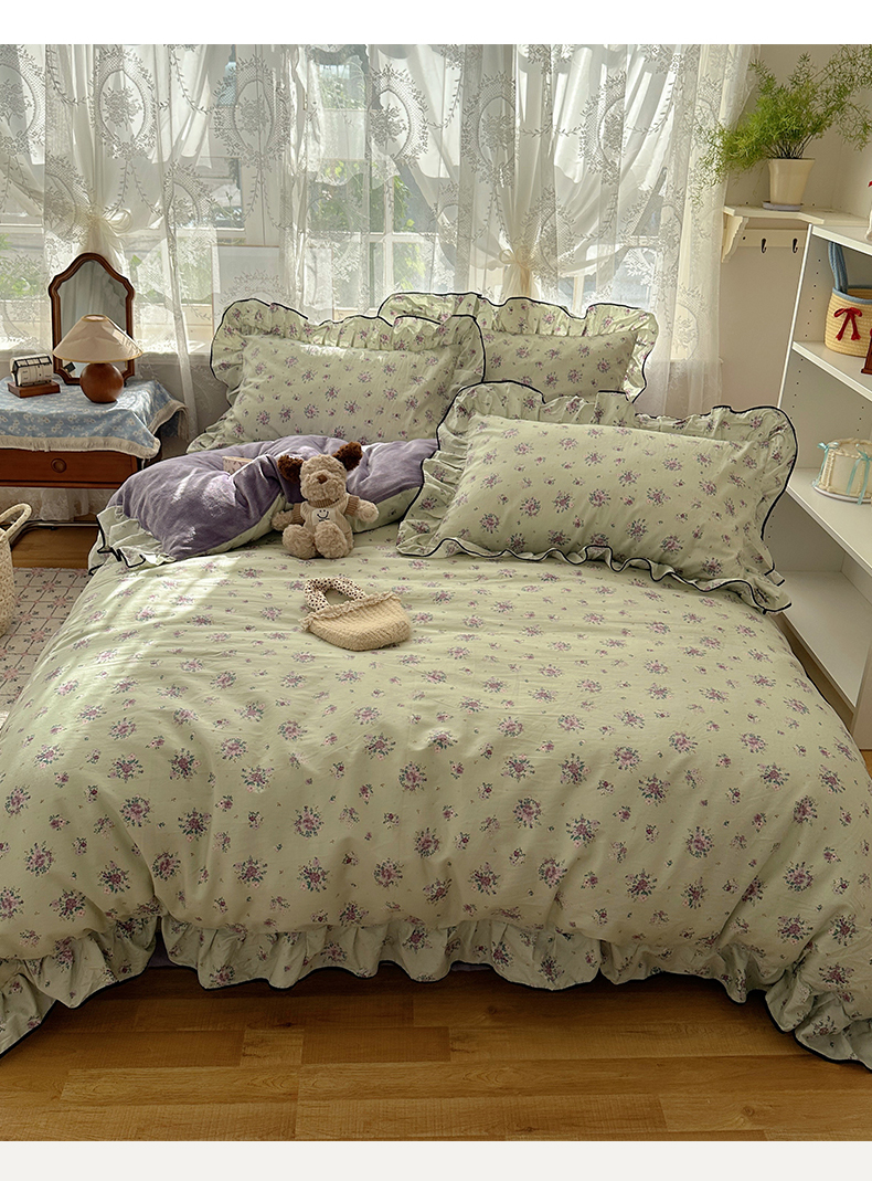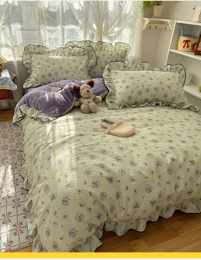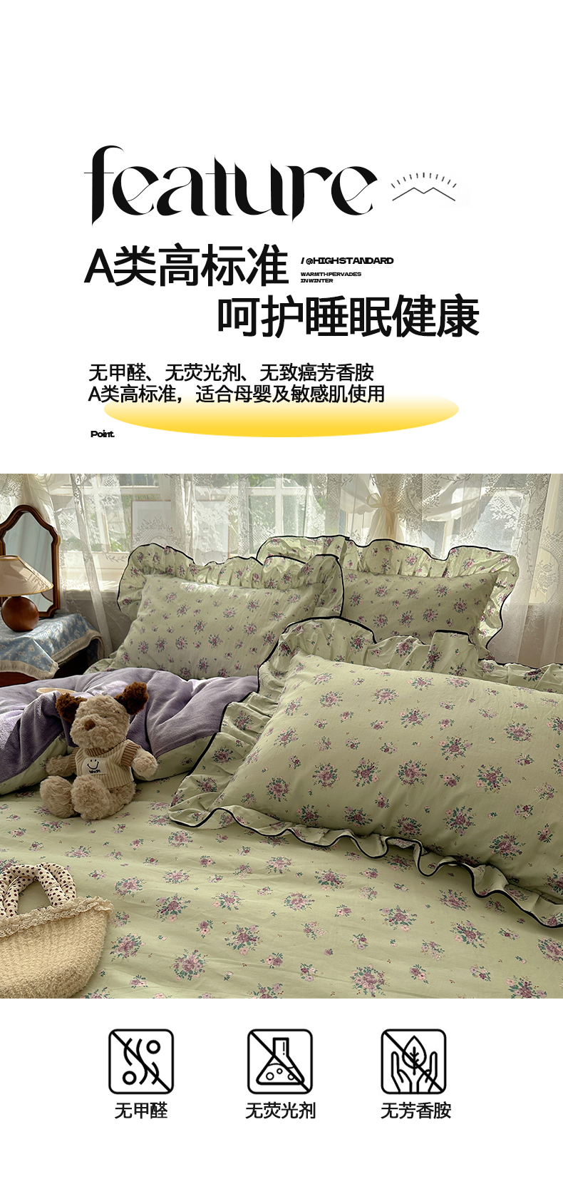 桃子家居 2025新款A类纯棉数码印花法式碎花棉加绒韩版花边碎花加厚牛奶绒四件套 棉加绒-花边浮影