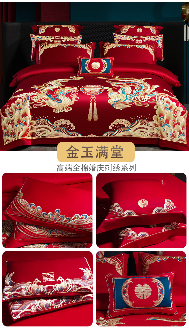 当前位置: 91家纺网 > 商品网购 > 床品套件 > 四件套 > 婚庆四件套 > 芊囍纺 2025新款全棉刺绣婚庆四件套 金玉满堂