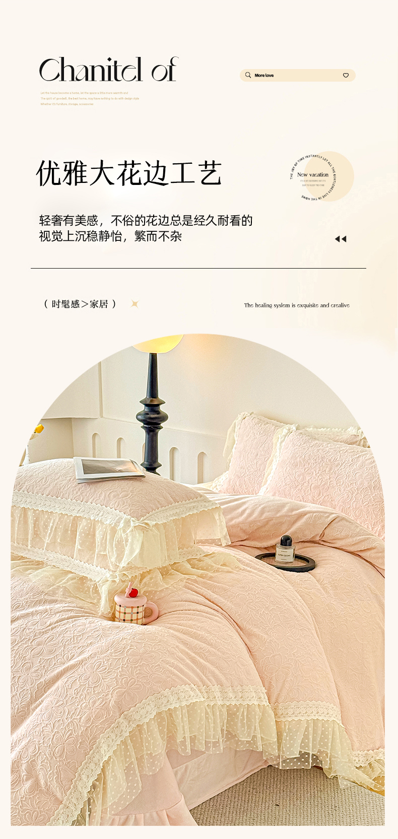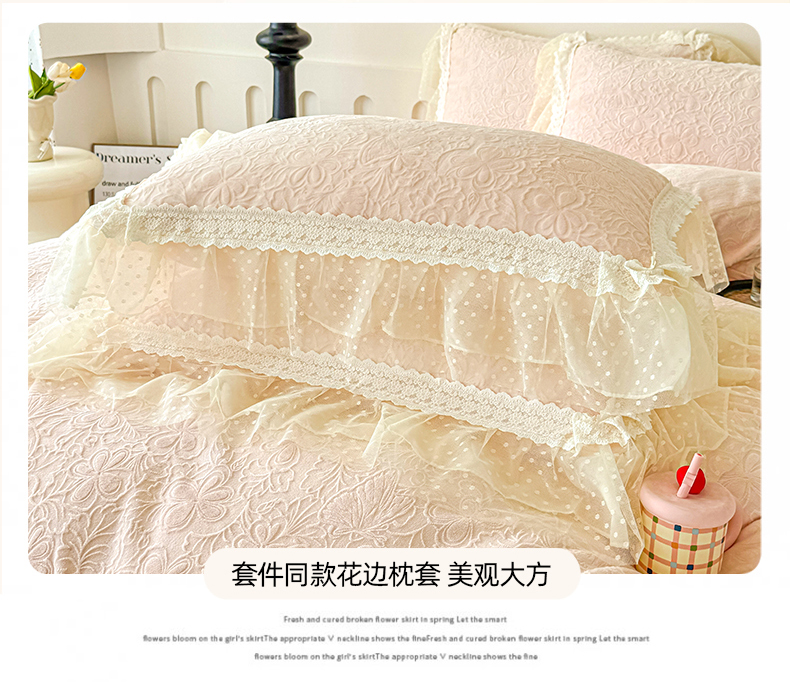 当前位置: 91家纺网 > 商品网购 > 床品套件 > 四件套 > 牛奶绒四件套 > 锦格家纺 2025新款A类高克重雕花牛奶绒花边四件套 初薇-玉粉