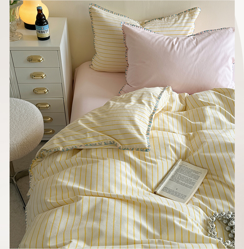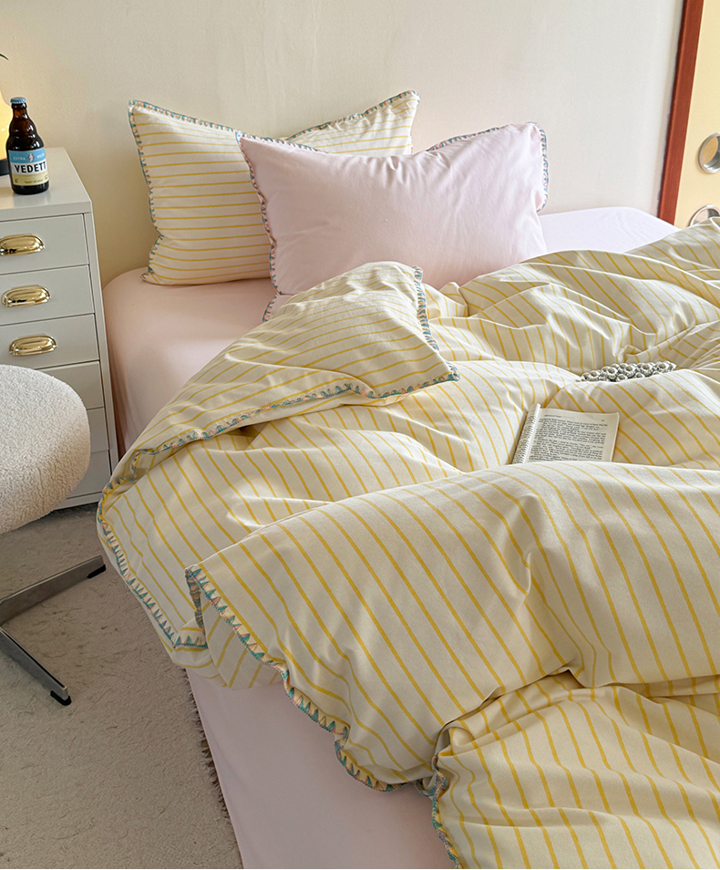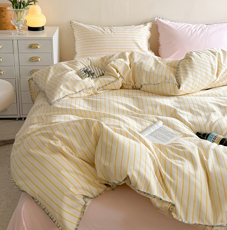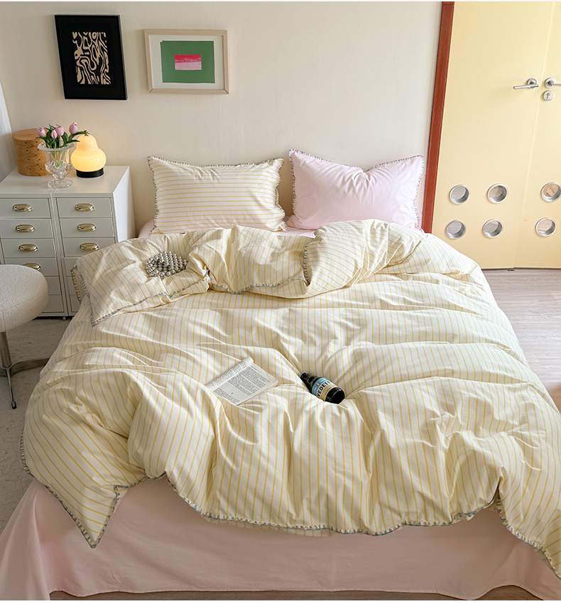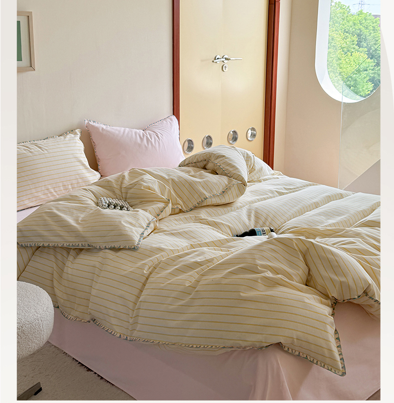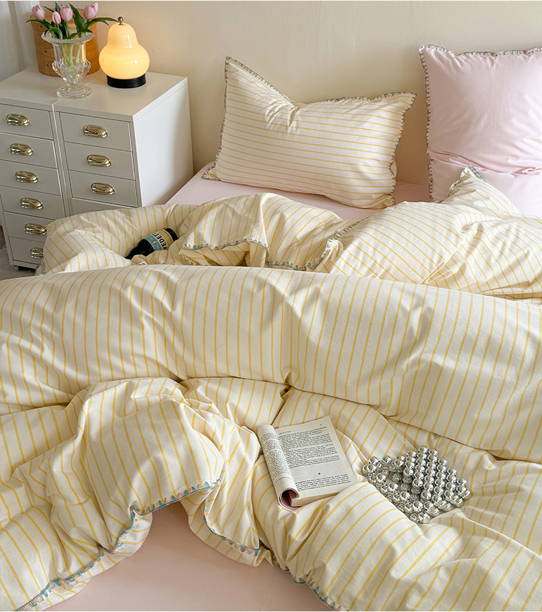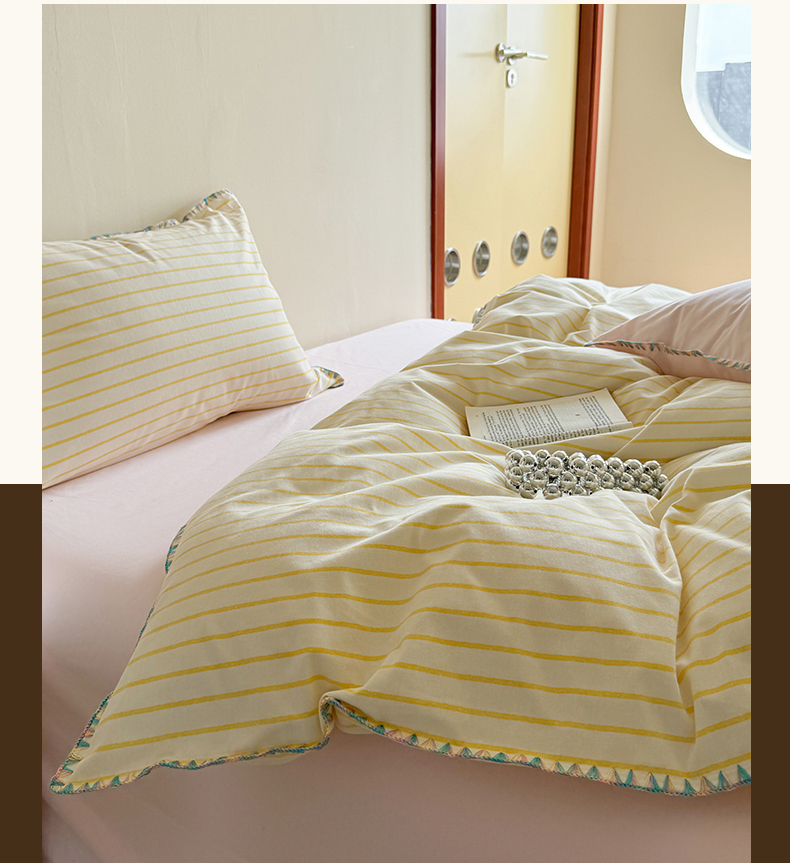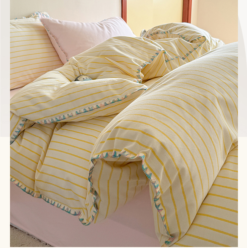 当前位置: 91家纺网 > 商品网购 > 床品套件 > 四件套 > 普通磨毛四件套 > 艾莱家纺 2025新款七彩贝壳全棉加厚超柔磨毛四件套 幻珊-黄粉中条