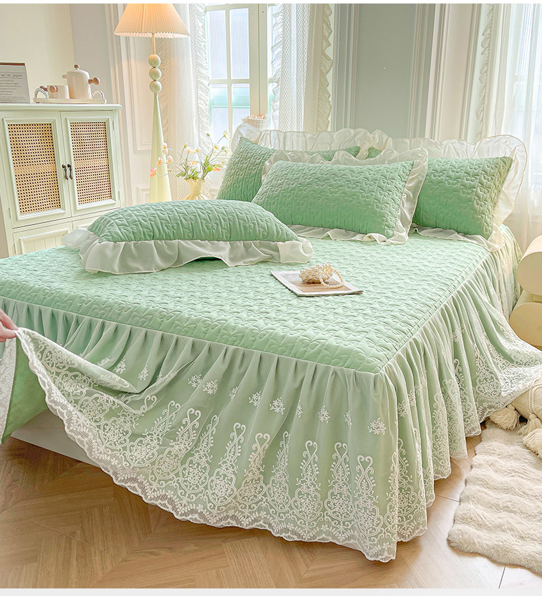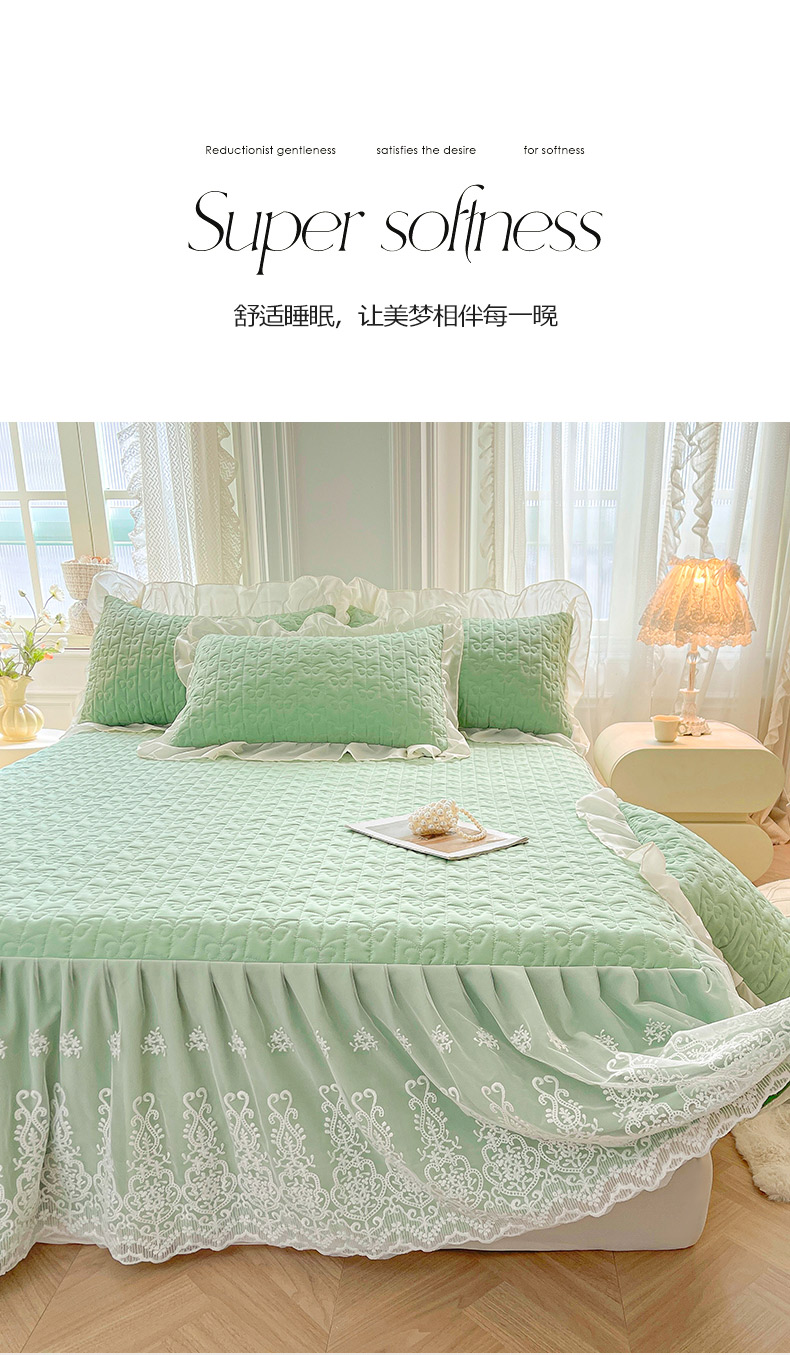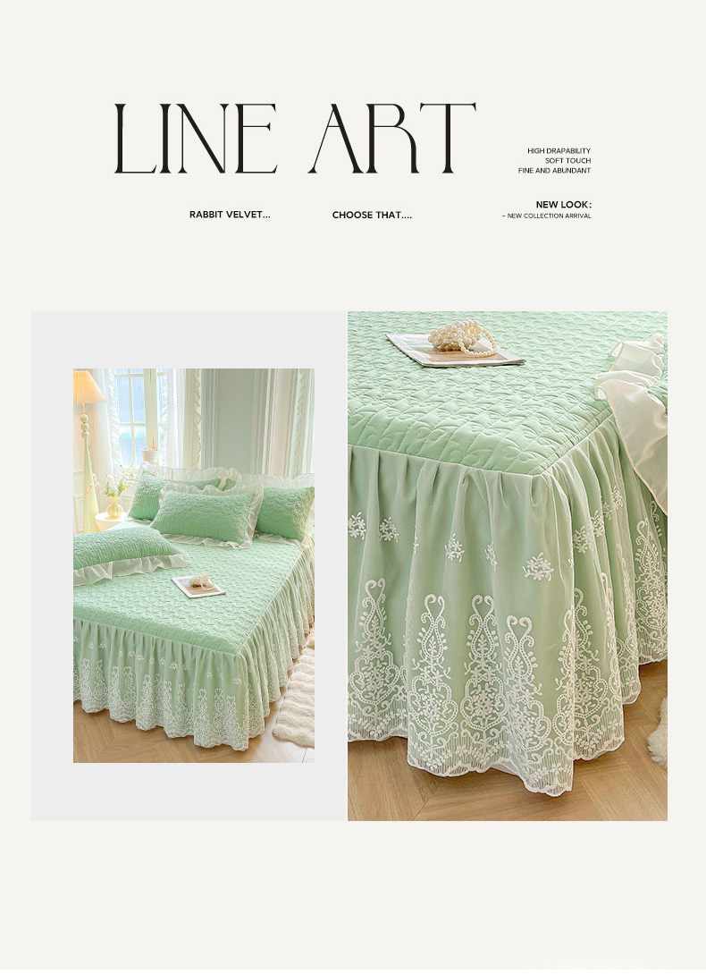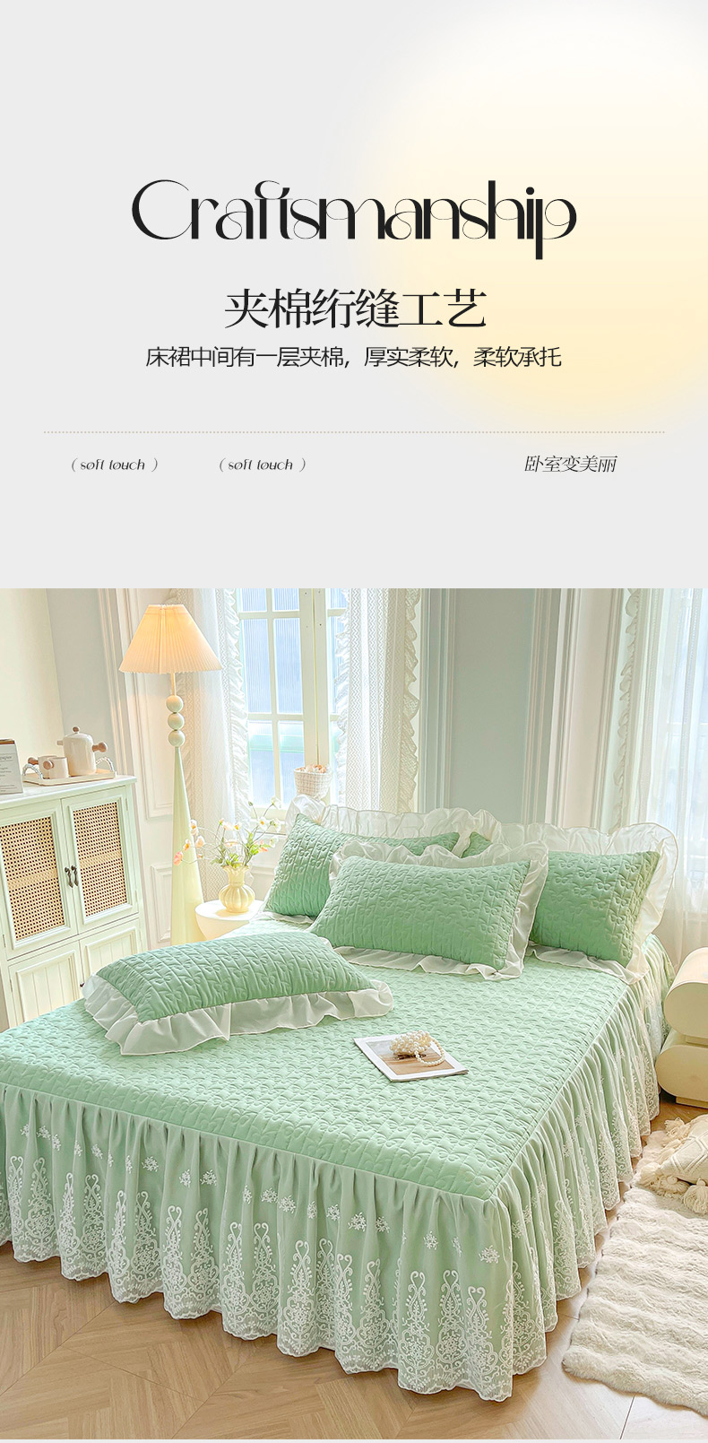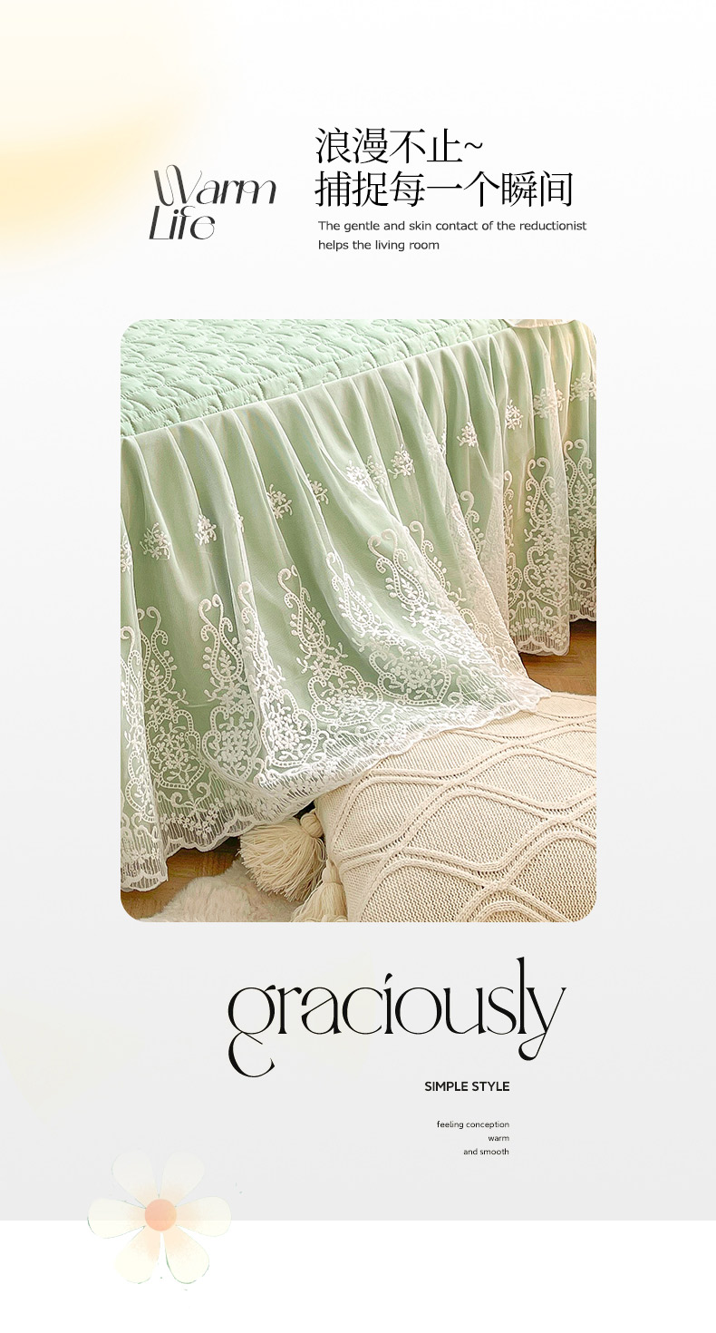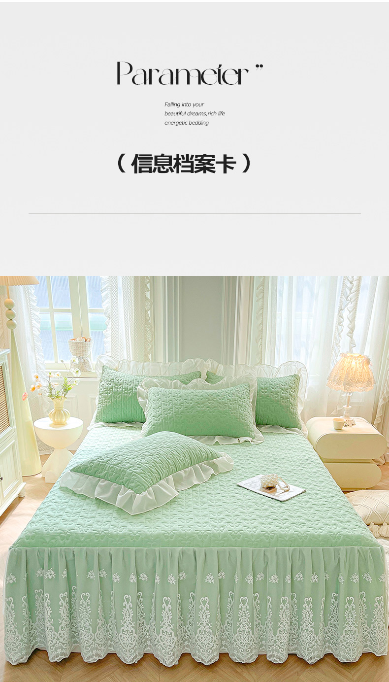 鼎丰家纺 2025新款蕾丝夹棉床裙-洛可可系列 洛可可-绿