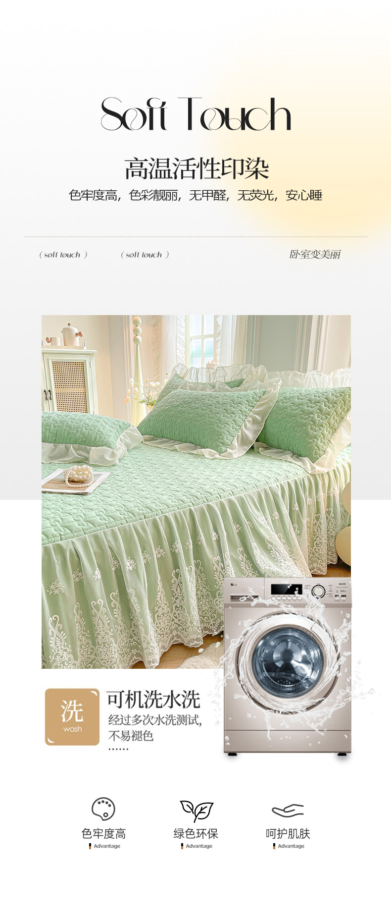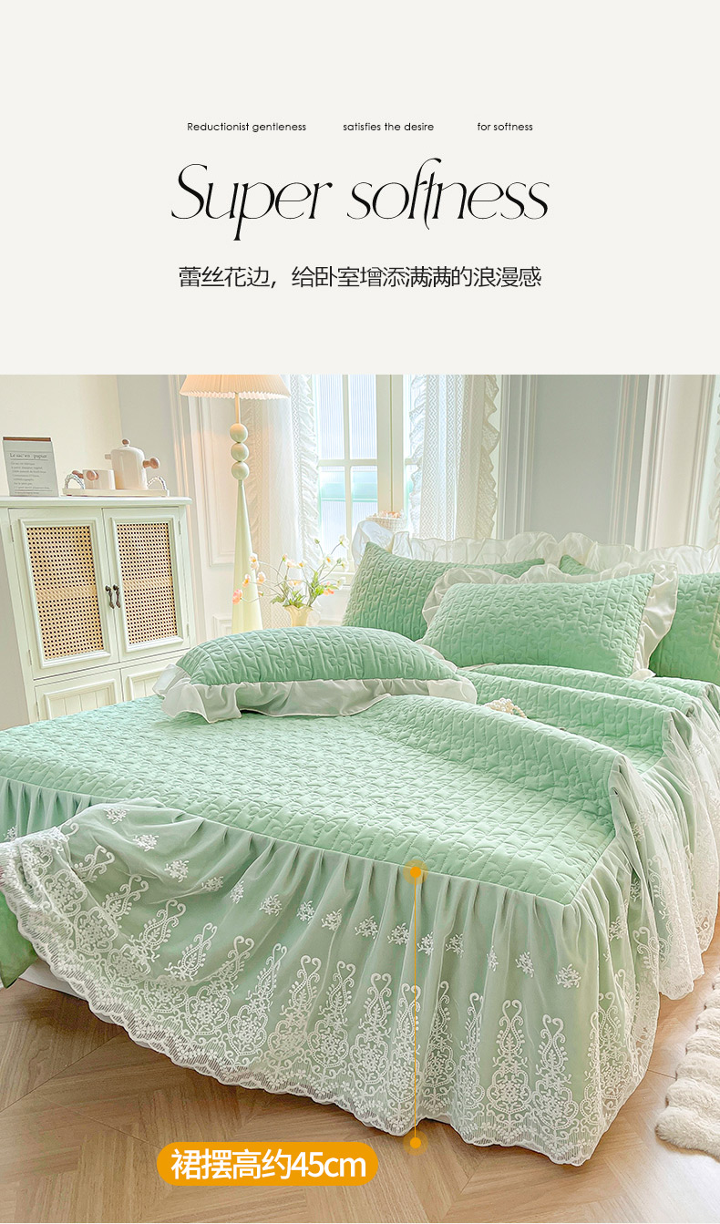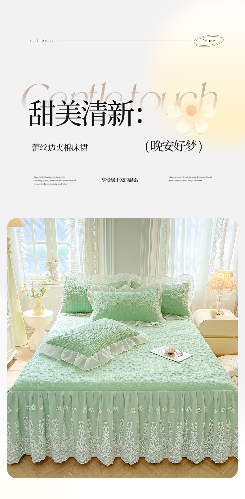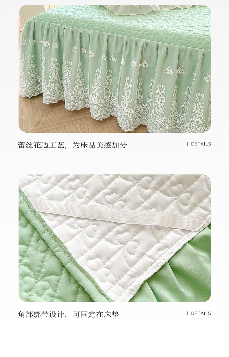 商品名称:鼎丰家纺 2025新款蕾丝夹棉床裙-洛可可系列 洛可可-绿