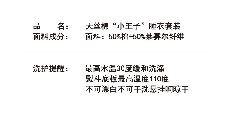 商品名称:(总)观月轩家纺 2025新款天丝棉短袖短裤套装-小王子