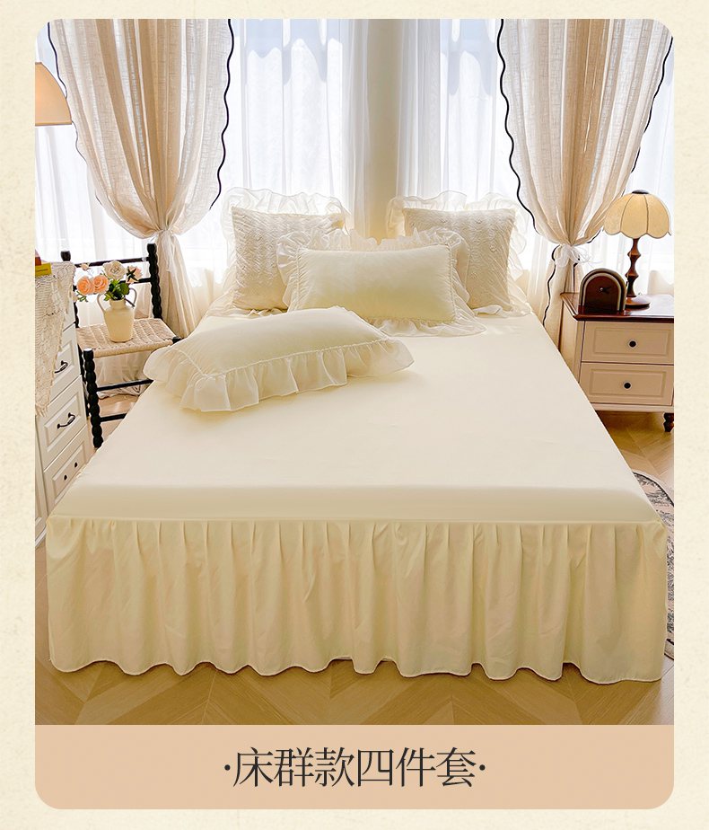 (总) 鼎丰家纺 2025新款法式浪漫花边皱皱纱床盖四件套,蔷薇-摩卡棕,蔷薇-桃花粉,蔷薇-牛奶白,蔷薇-云雾灰,蔷薇-清洗绿