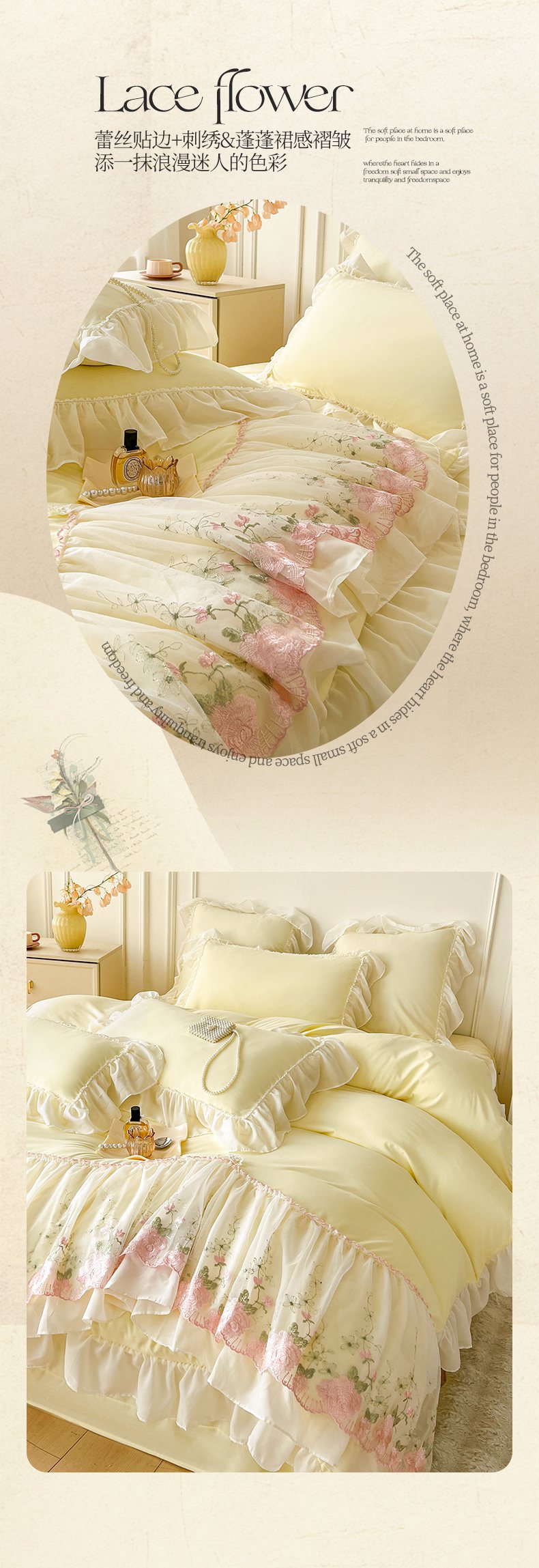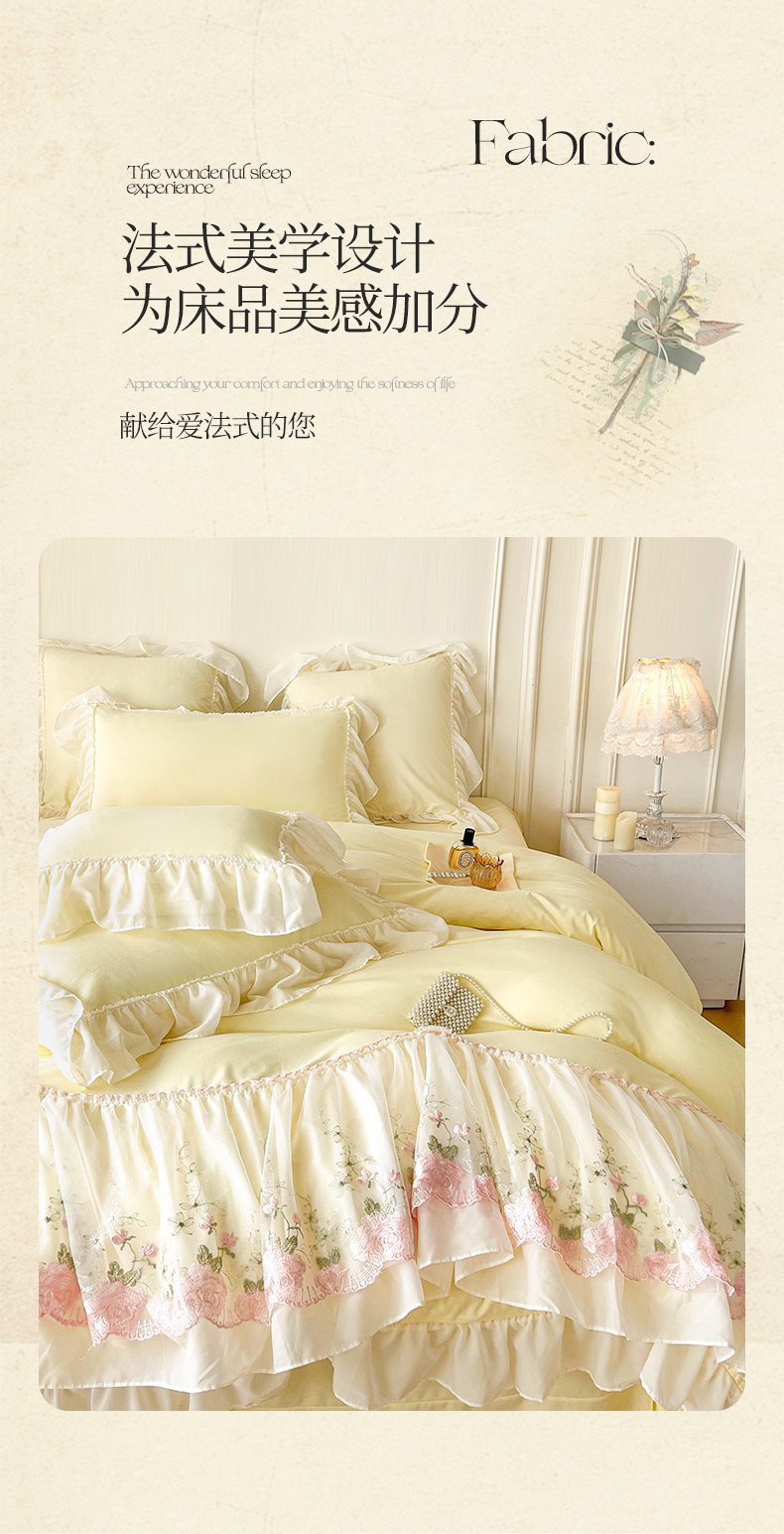 (总)鼎丰家纺 2025新款法式高定雪纺花边四件套(提供买家秀),绿野雏语-米色,绿野雏语-奶白,绿野雏语-浅绿