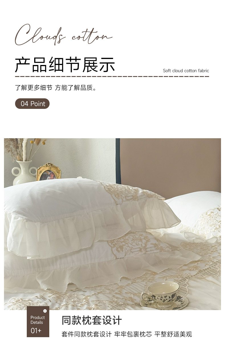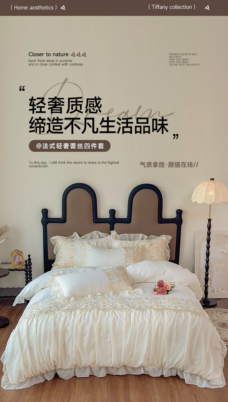 当前位置: 91家纺网 > 商品网购 > 床品套件 > 四件套 > 其它四件套 > 鼎丰家纺 2025新款蕾丝刺绣雪纺花边四件套 香榭-浅绿