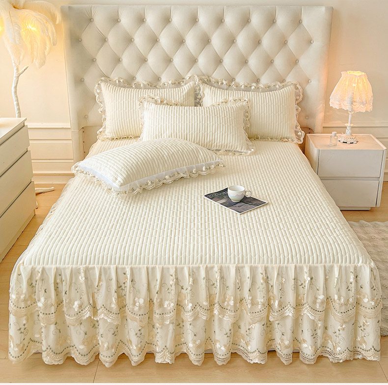 商品名称:(总)鼎丰家纺 2025新款皱皱纱夹棉床裙三件套--晨曦系列