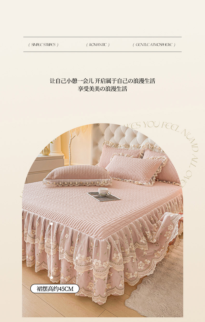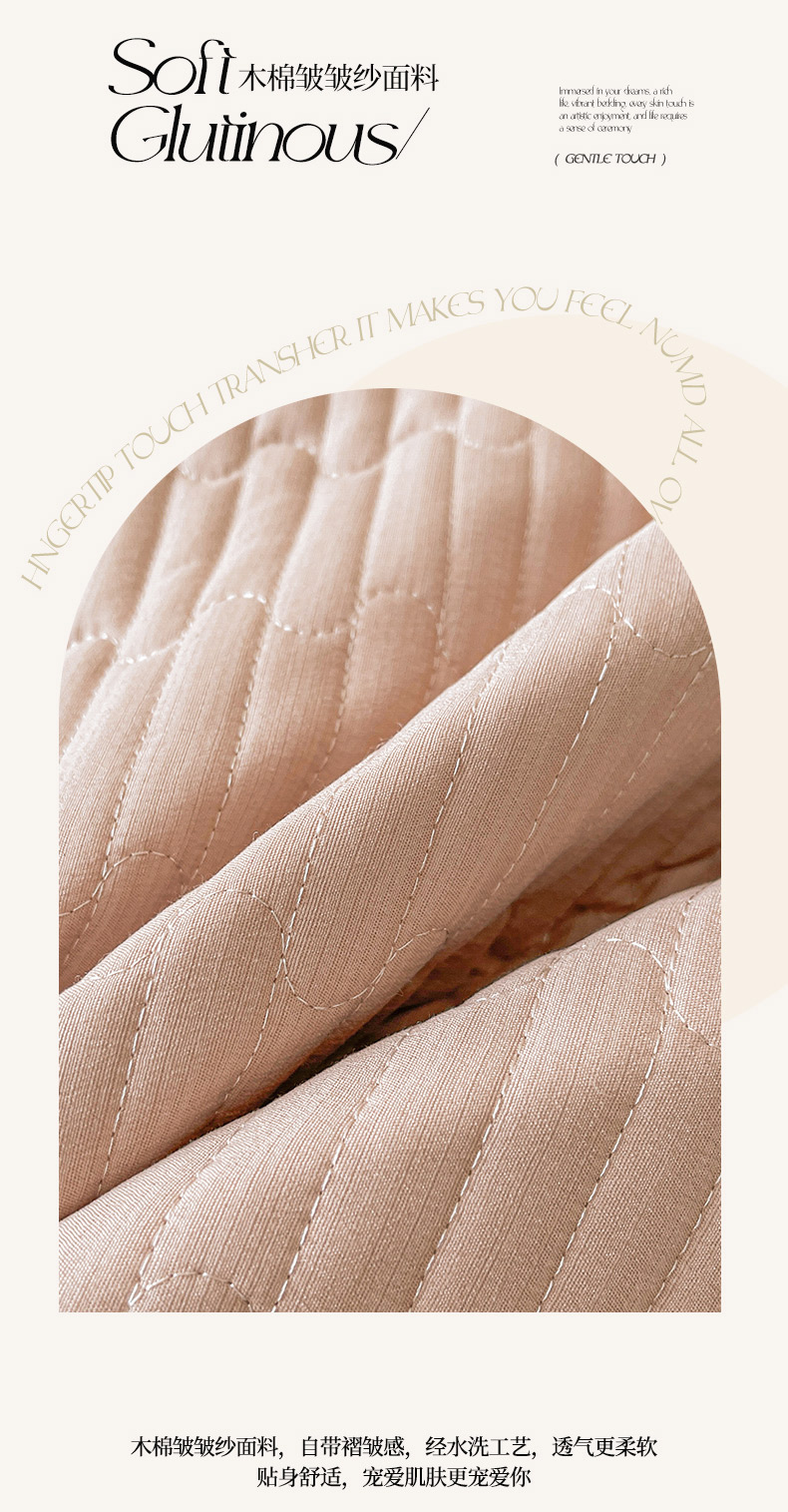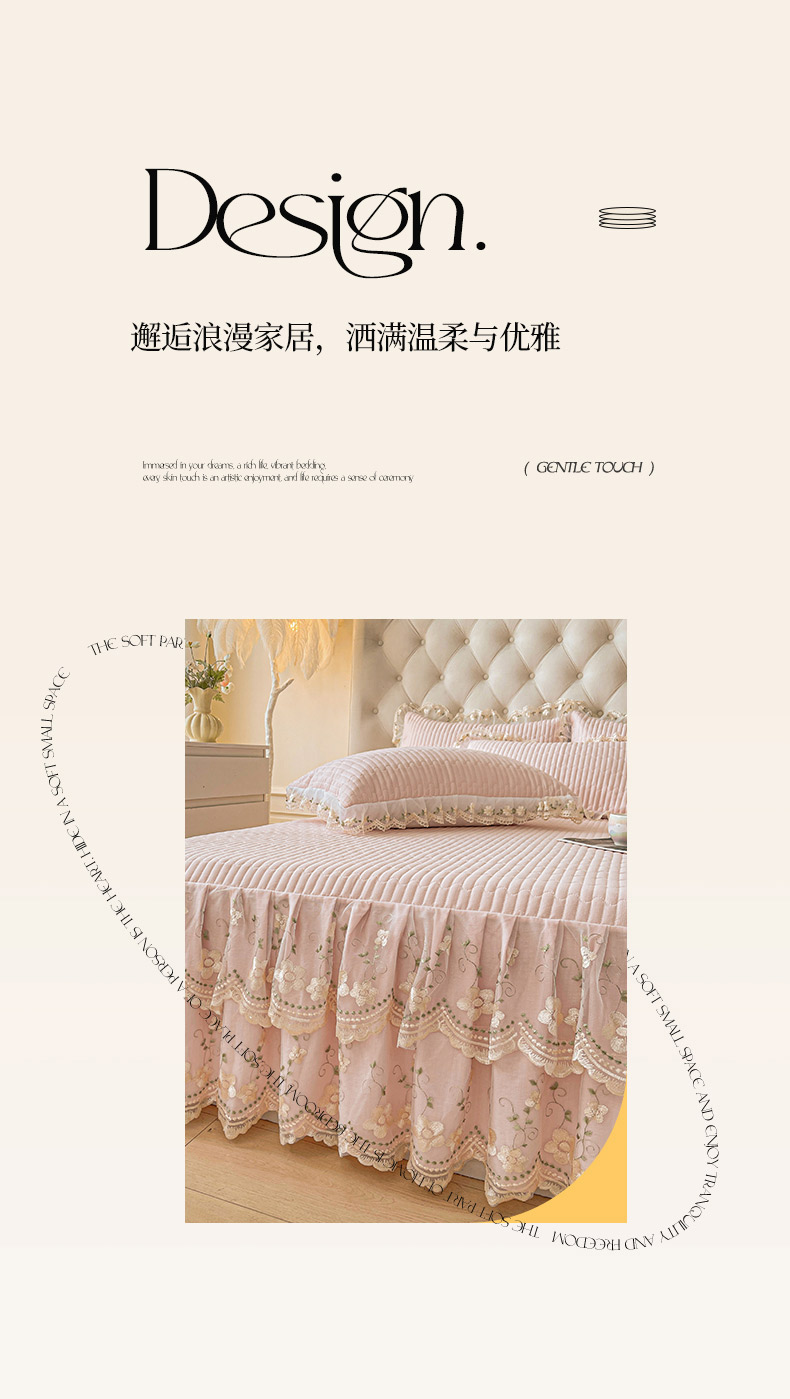 • 91家纺网 家纺一手货源 找家纺 鼎丰家纺 2025新款皱皱纱夹棉床裙三件套--晨曦系列 晨曦-豆沙