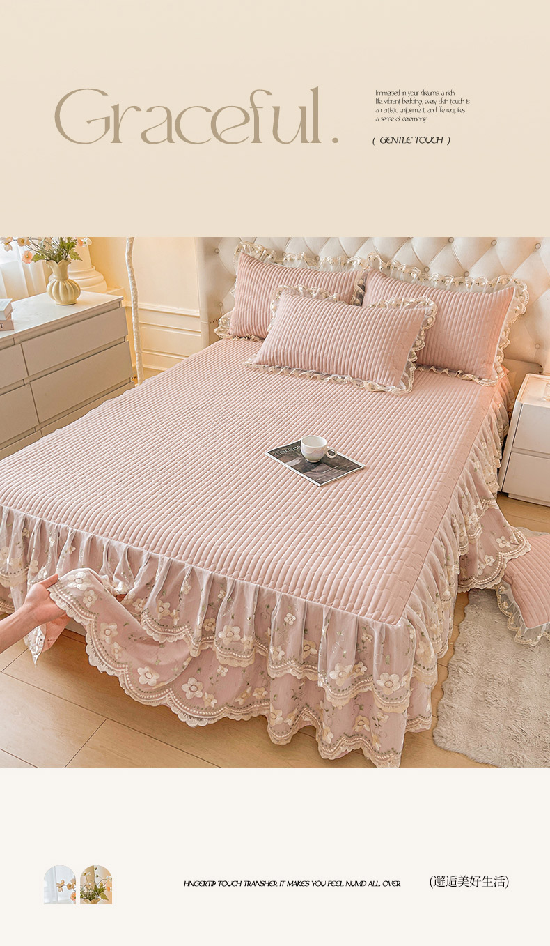 鼎丰家纺 2025新款皱皱纱夹棉床裙三件套--晨曦系列 晨曦-豆沙