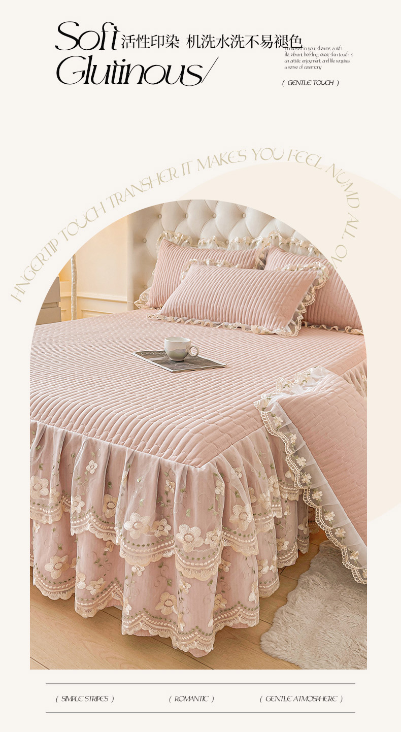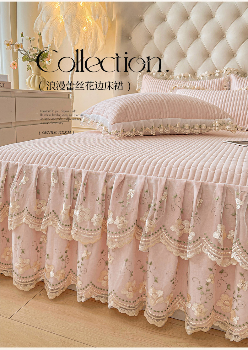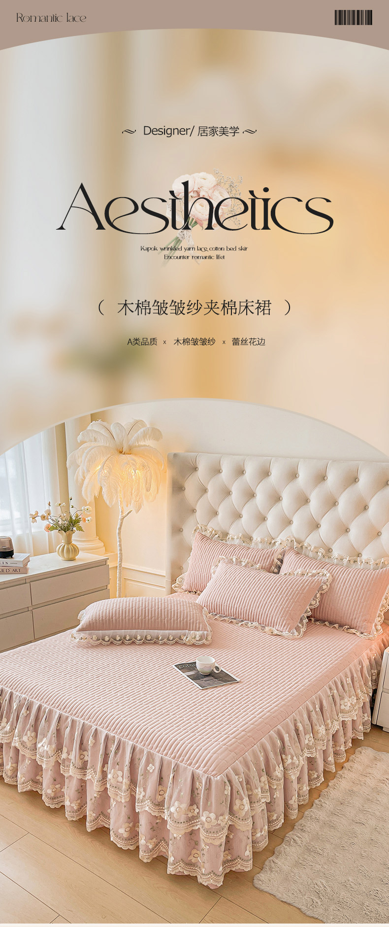 • 91家纺网 家纺一手货源 找家纺 (总)鼎丰家纺 2025新款皱皱纱夹棉床裙三件套-花影系列,花影-豆沙,花影-浅蓝,花影-浅米,花影-浅玉,花影-清新绿,花影-樱花粉