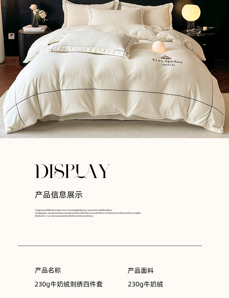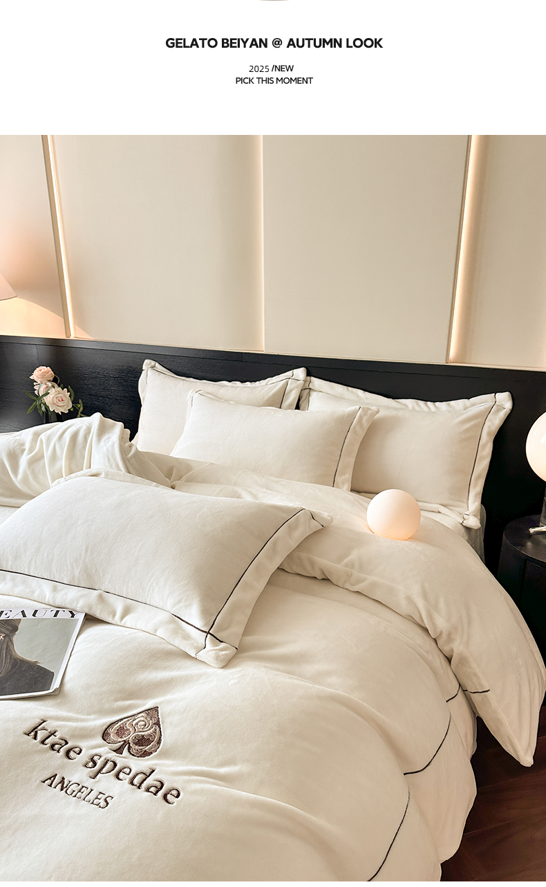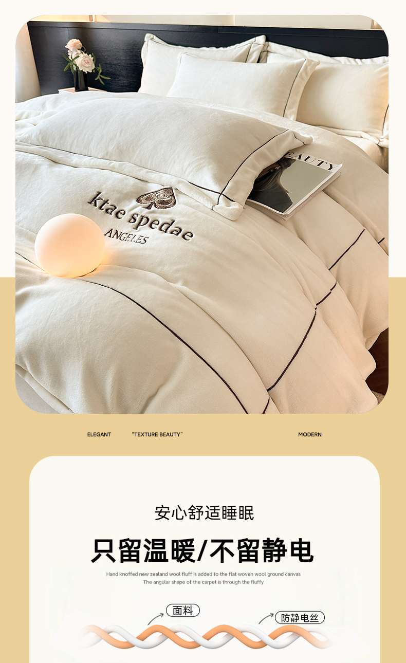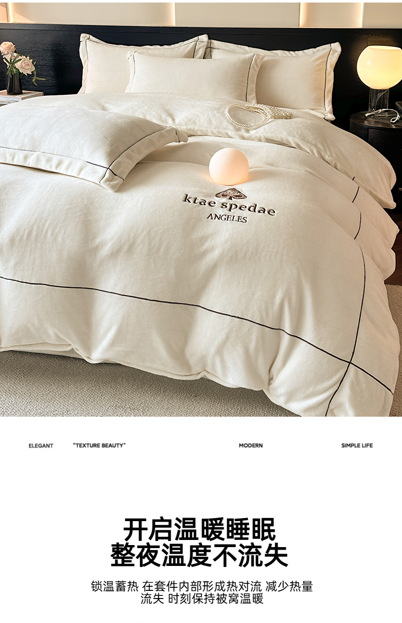 商品名称:狂想家 2025新款刺绣牛奶绒四件套-安琪儿 安琪儿-暖冬白