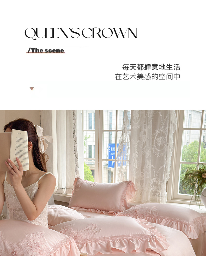 (总)美娘阁 2025新款长绒棉全棉提花居家款四件套-芙莉亚,芙莉亚(薄荷绿),芙莉亚(仙粉)
