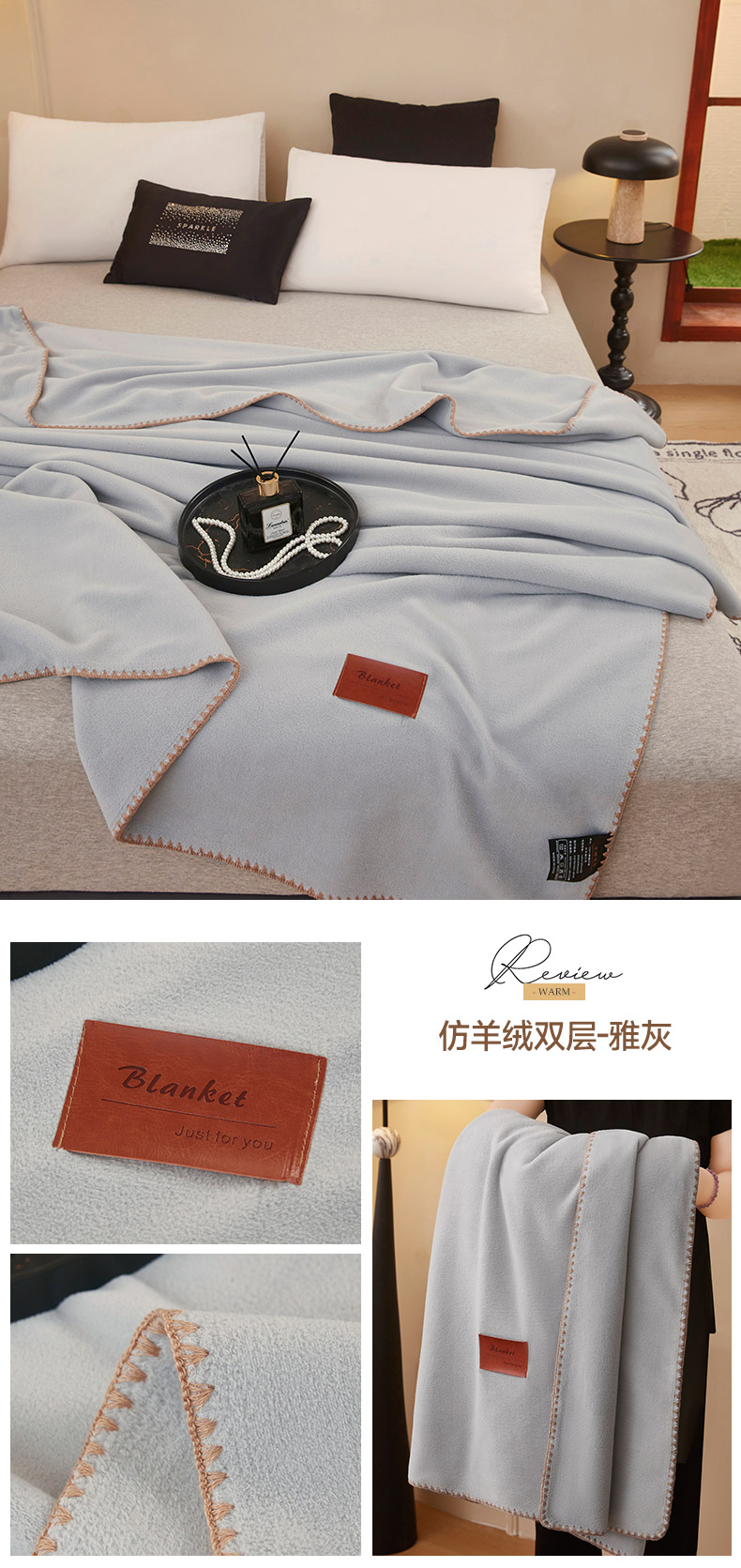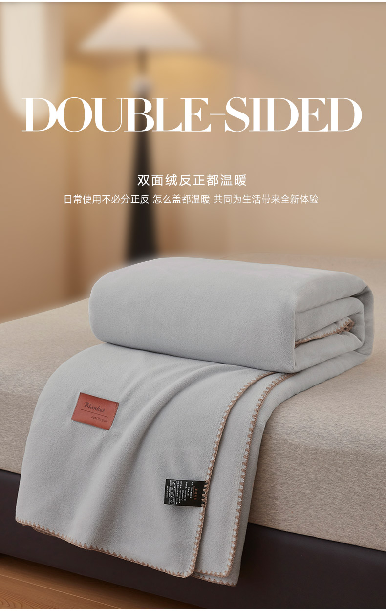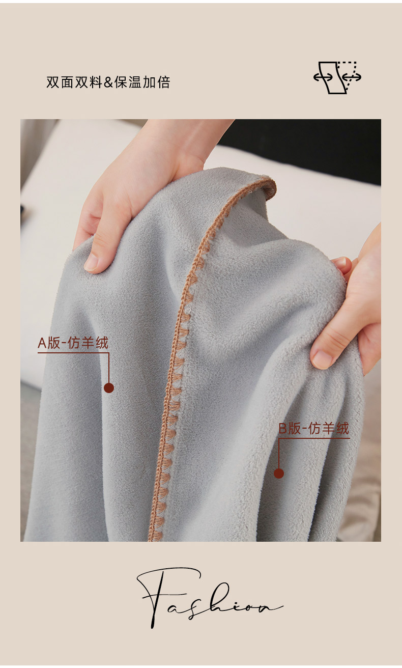 商品名称:肖恩毯业 2025新款轻奢纯色仿羊绒毯单层双层保暖加厚秋冬毛毯盖毯毯子跨境专供 仿羊绒双层-雅灰