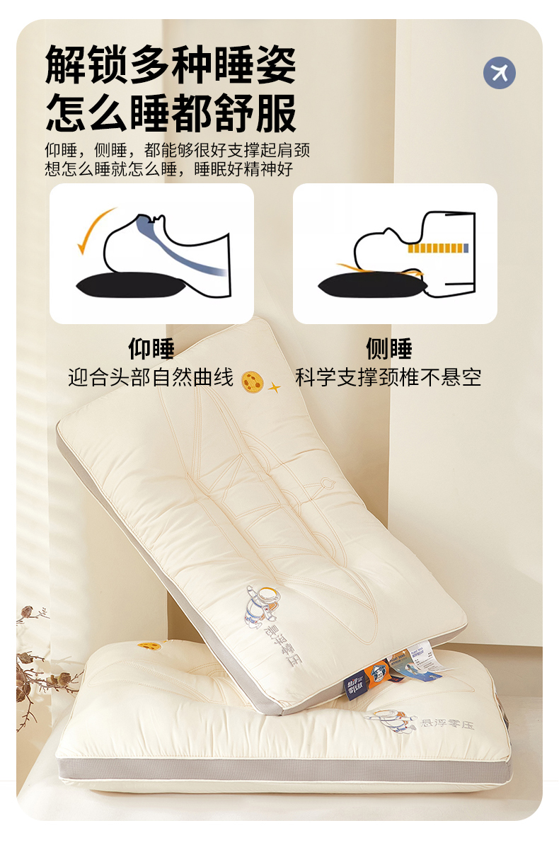 (总)鼎晟纺 2025新款宇航员悬浮零压枕护颈枕头成人学生枕芯,悬浮零压枕