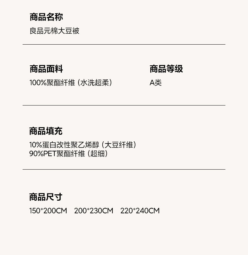 当前位置: 91家纺网 > 商品网购 > 被子 > 棉被 > 玛德琳 2025新款良品元棉大豆被子被芯 玉粉