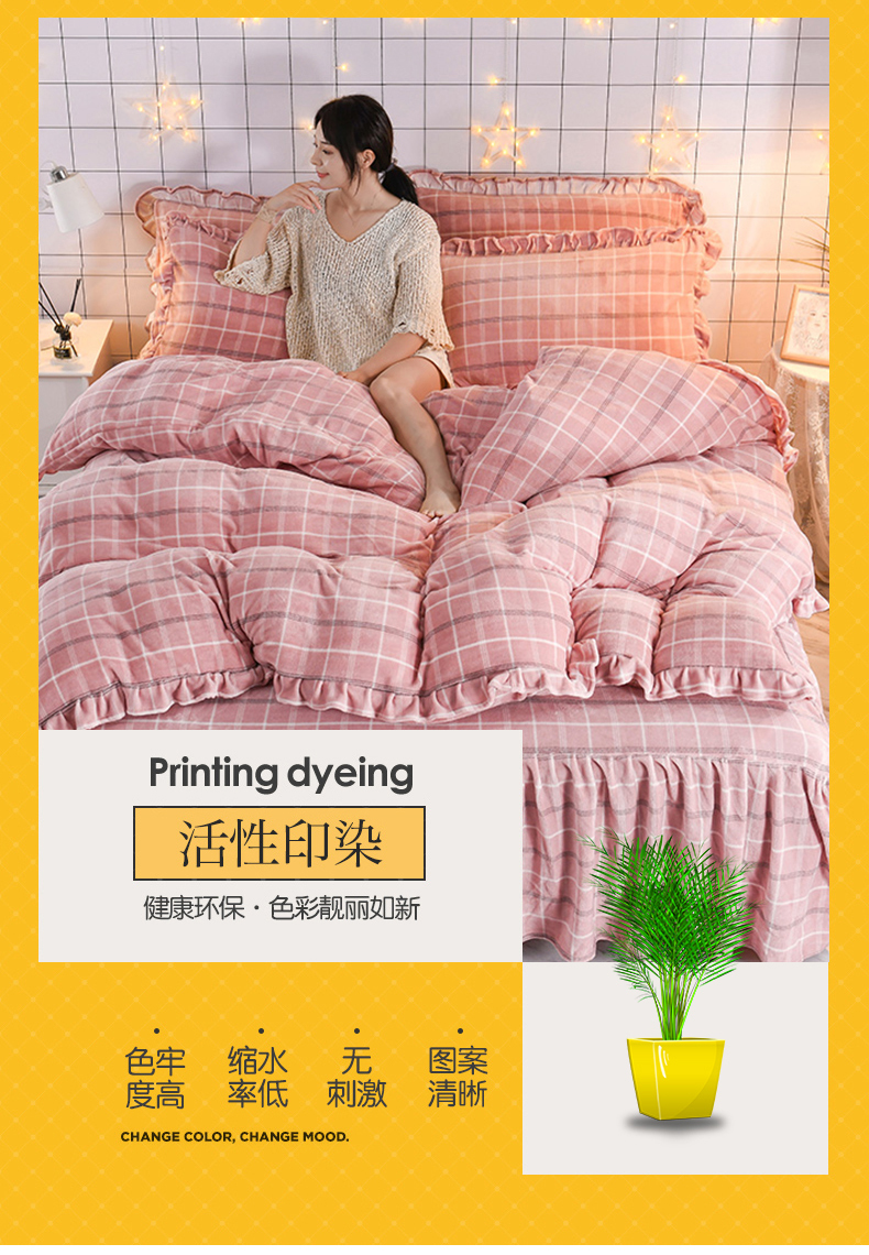 商品名称:睡美人 2025新款韩版印花牛奶绒床裙款四件套 格调豆沙