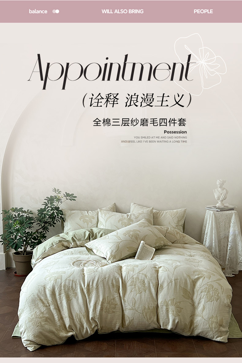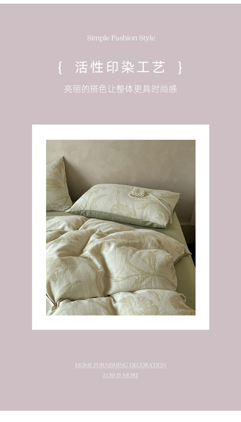商品名称:田野 2025新款全棉三层纱提花磨毛系列四件套 花影如诗