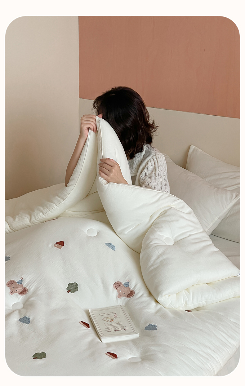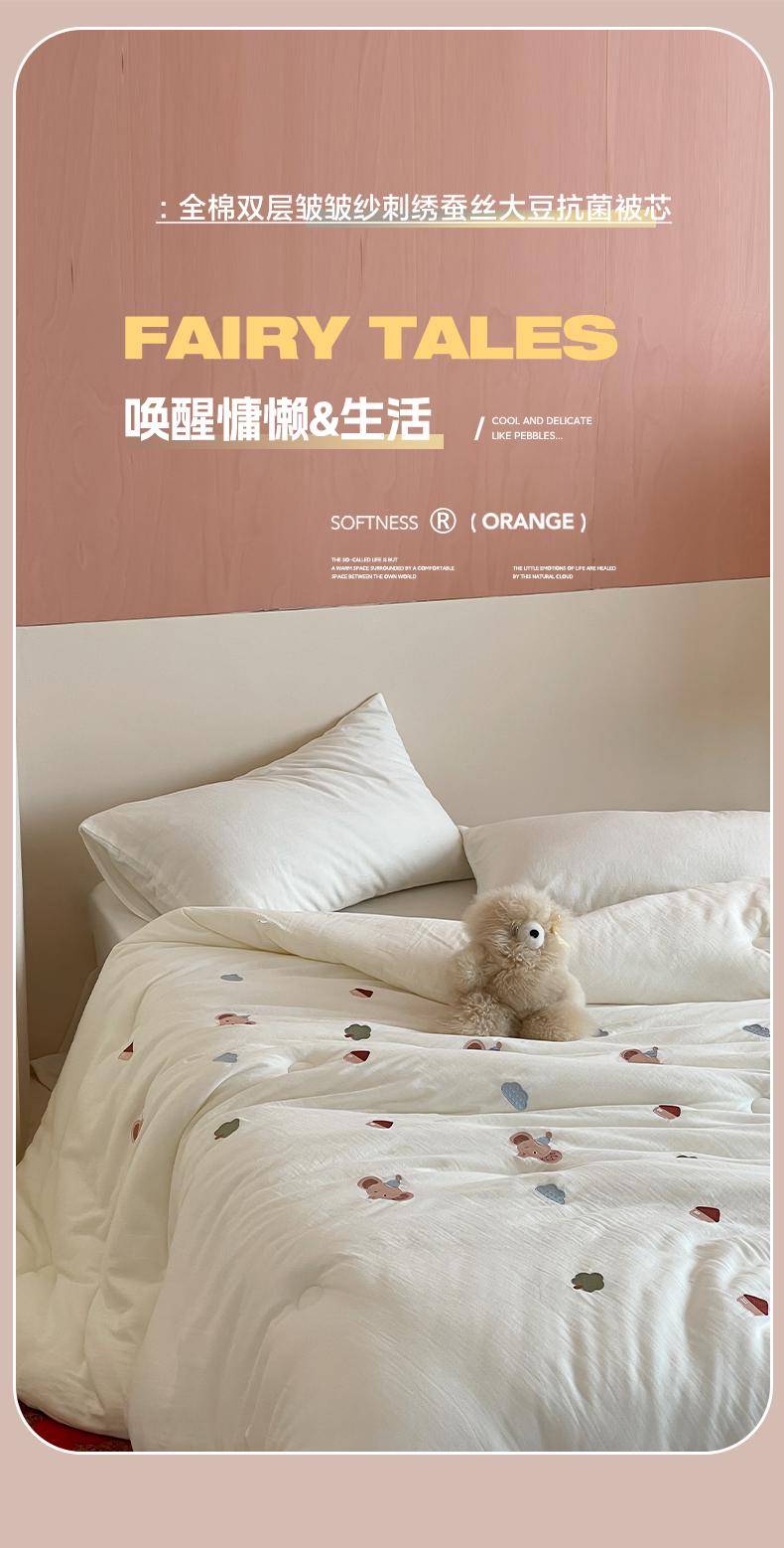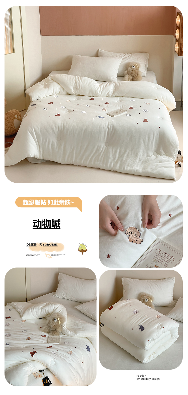• 91家纺网 家纺一手货源 找家纺 一加一 2025新款全棉双层皱皱纱刺绣蚕丝大豆抗菌被子被芯 趴趴象