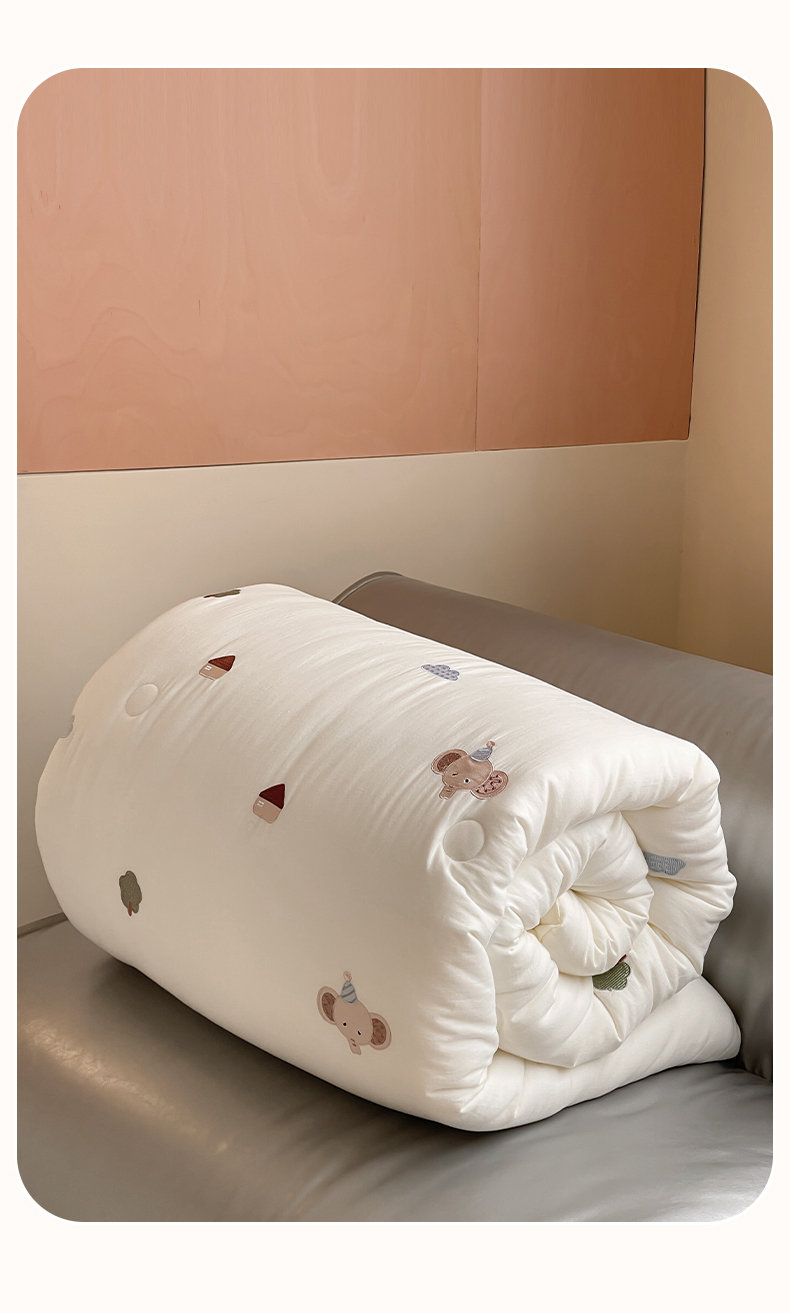 一加一 2025新款全棉双层皱皱纱刺绣蚕丝大豆抗菌被子被芯 趴趴象