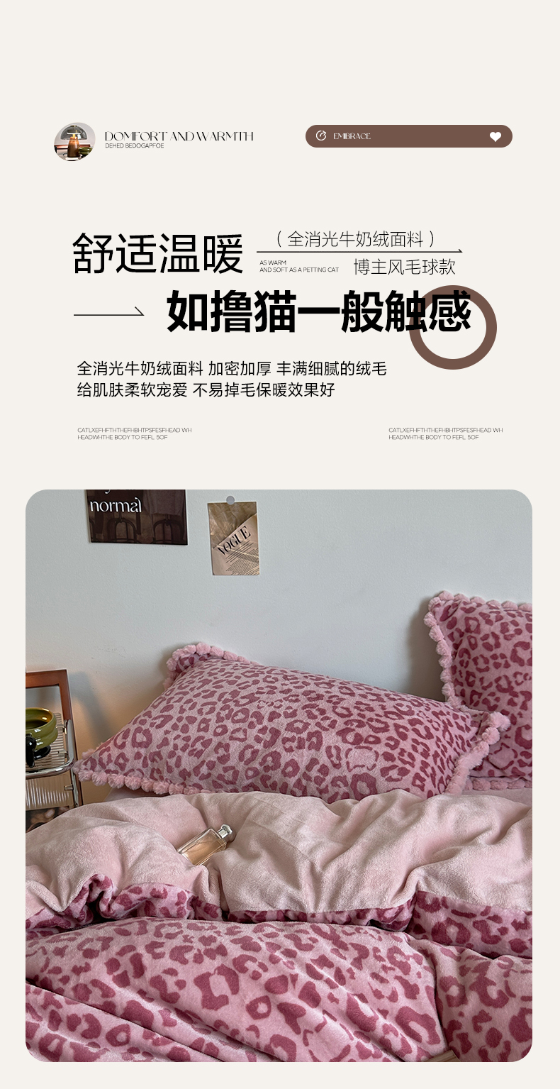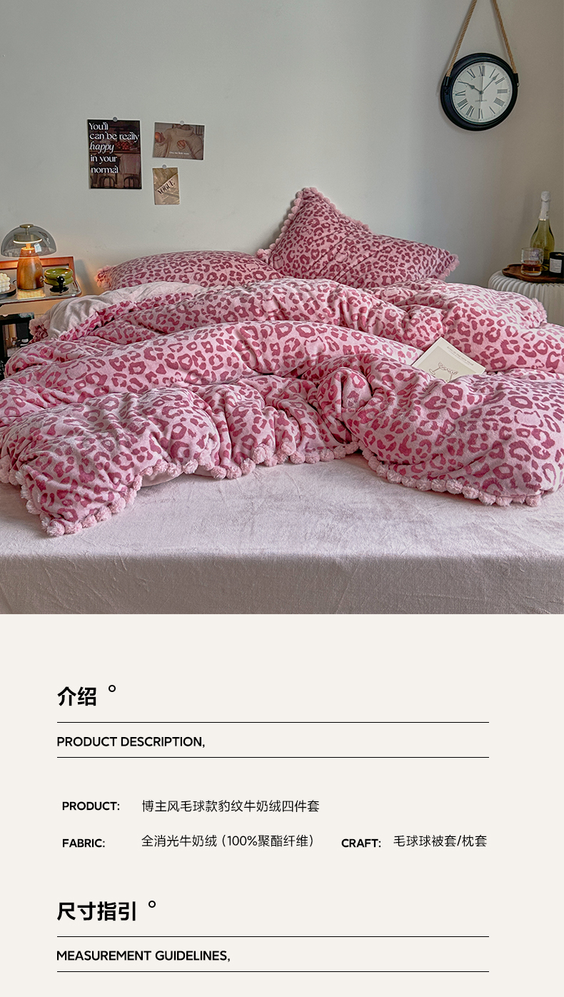 当前位置: 91家纺网 > 商品网购 > 床品套件 > 四件套 > 牛奶绒四件套 > 艾咪-Amy ntmy 2025新款博主风毛球款豹纹牛奶绒四件套 粉豹纹