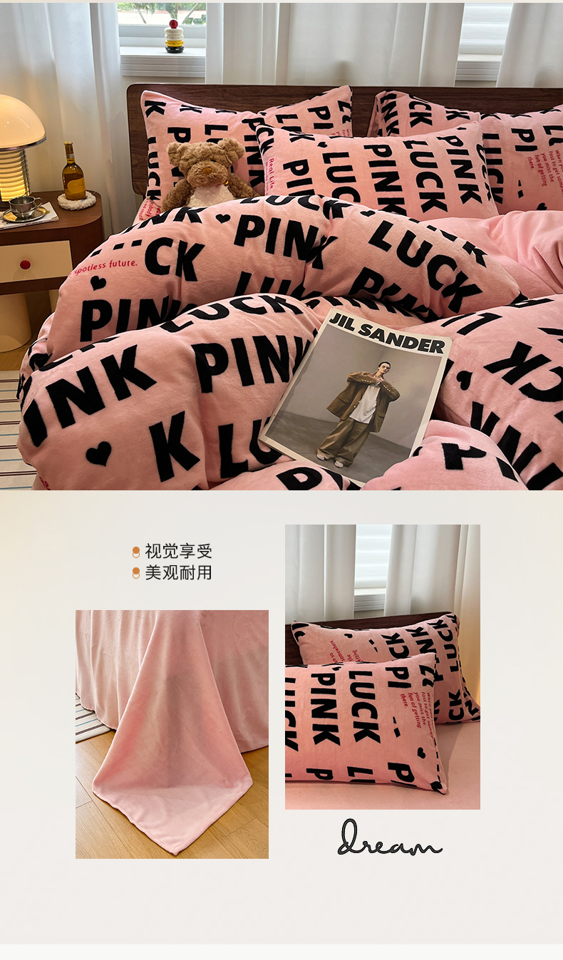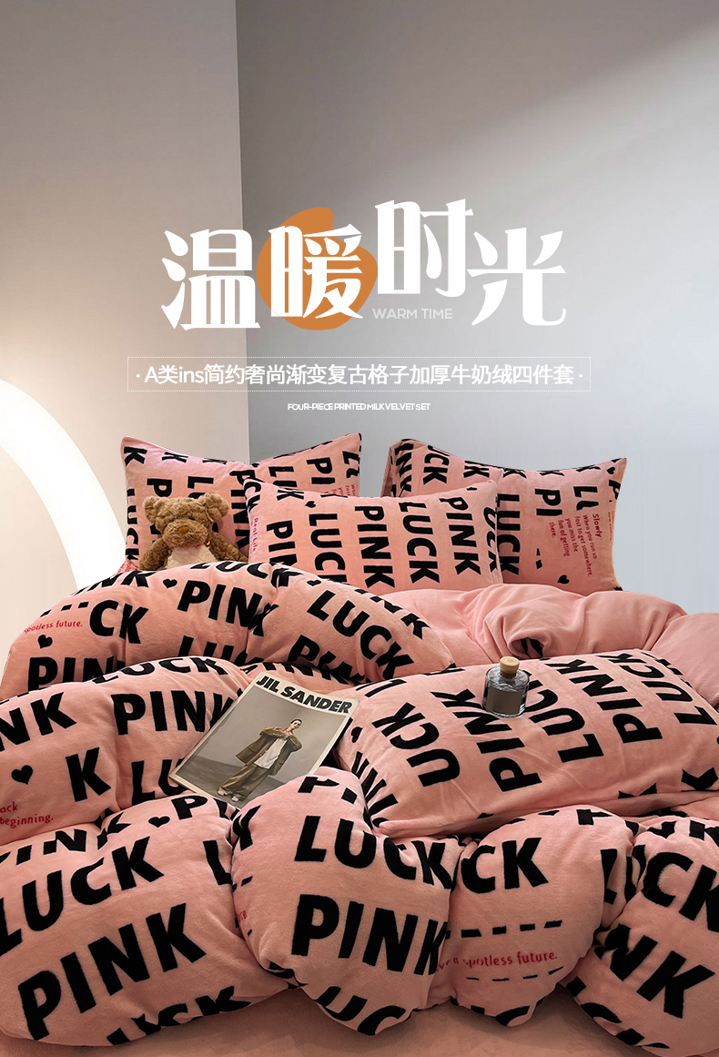 当前位置: 91家纺网 > 商品网购 > 床品套件 > 四件套 > 牛奶绒四件套 > 桃子家居 2025新款A类ins简约奢尚渐变复古格子加厚牛奶绒四件套 绒-拉卡粉