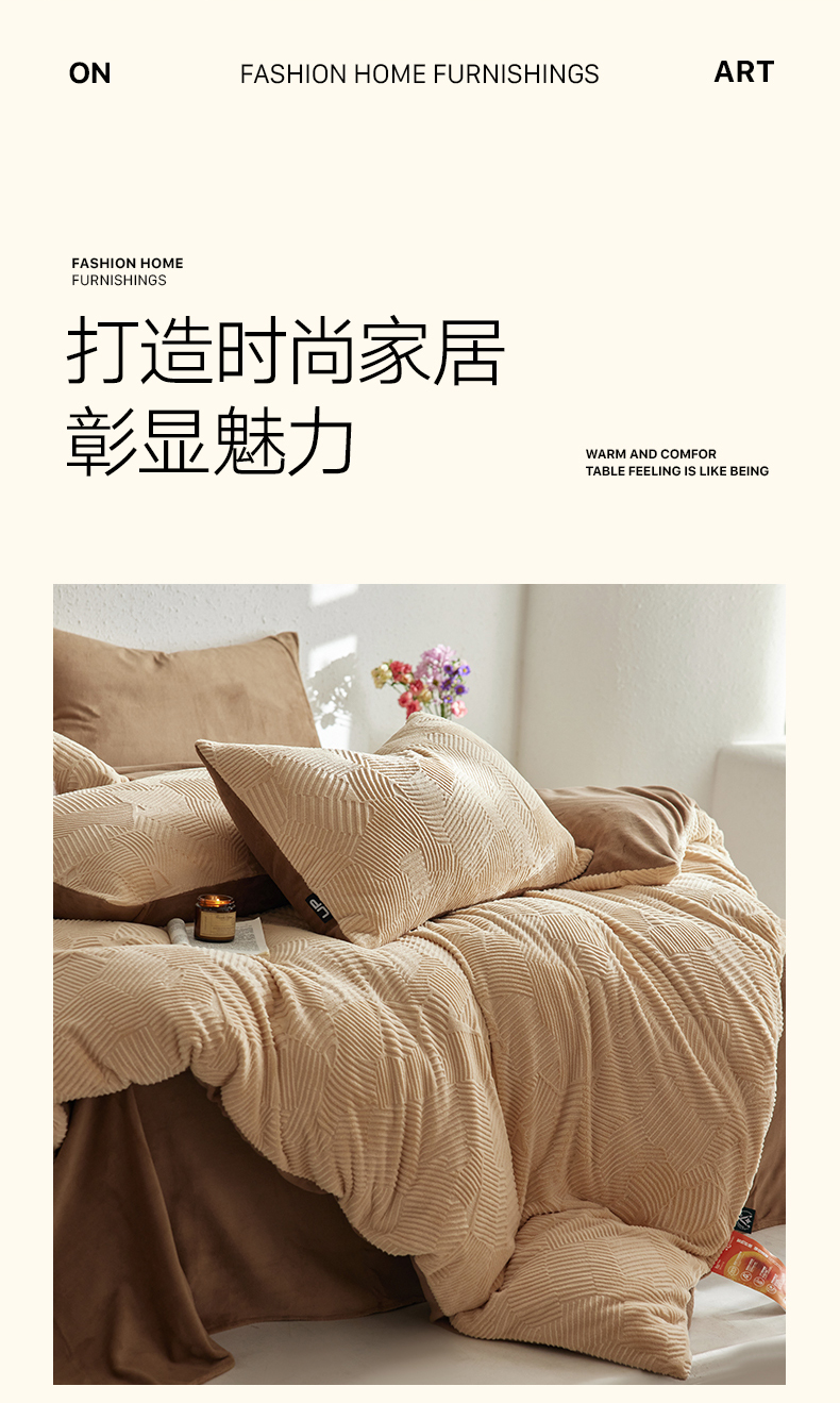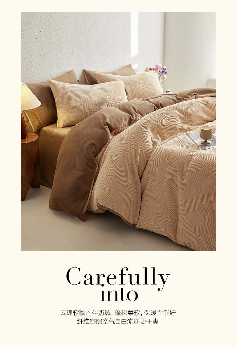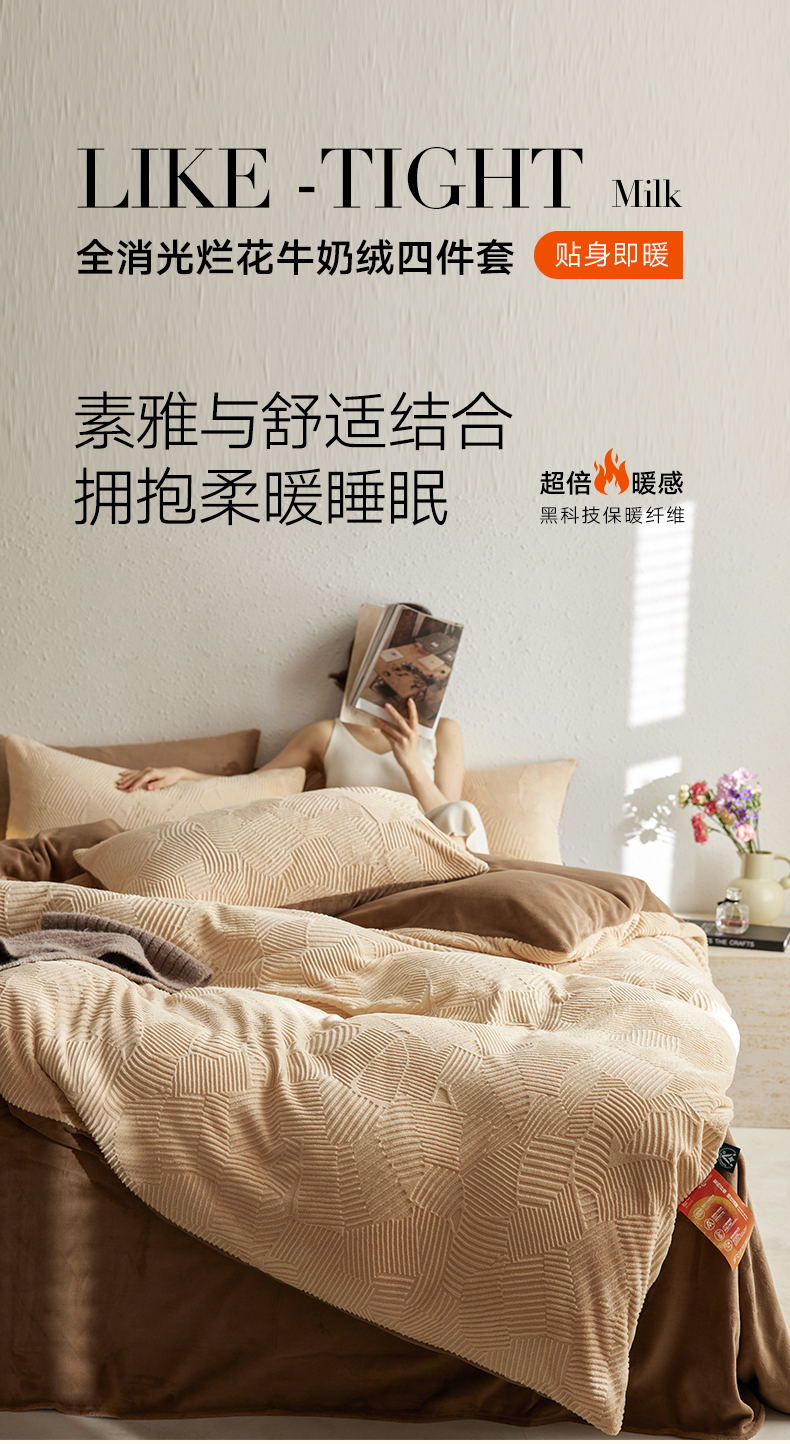 当前位置: 91家纺网 > 商品网购 > 床品套件 > 四件套 > 牛奶绒四件套 > 千朵森 2025新款亲肤舒适烂花全消光牛奶绒四件套-梵静 梵静-奶茶咖