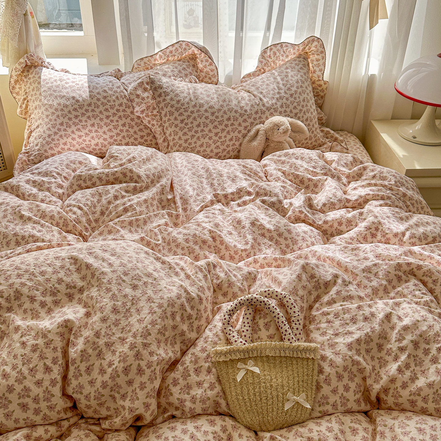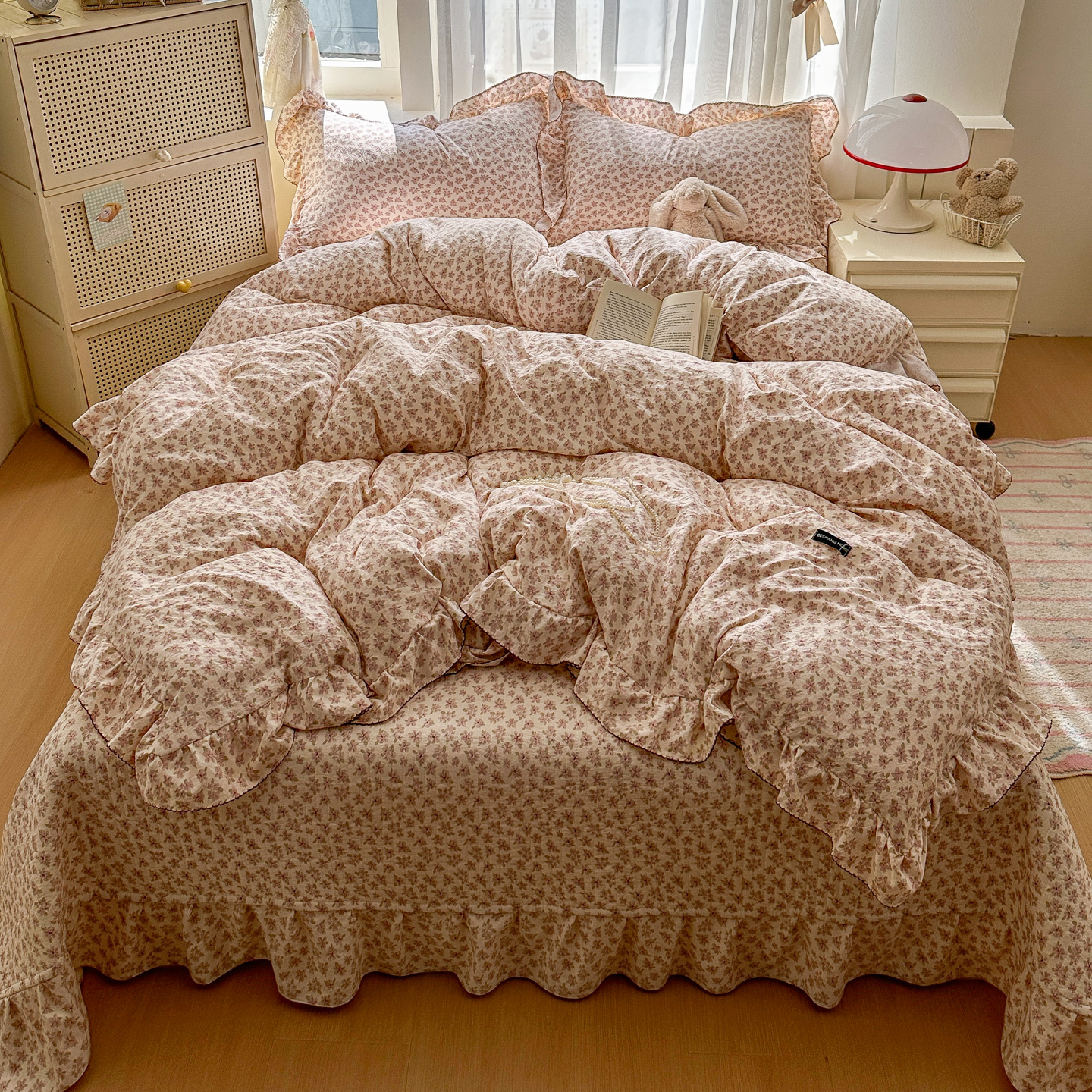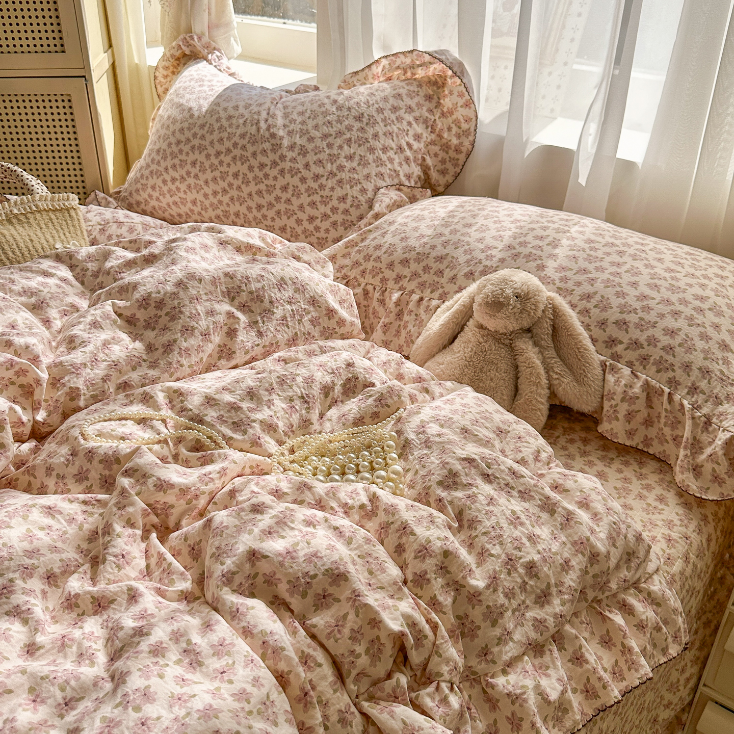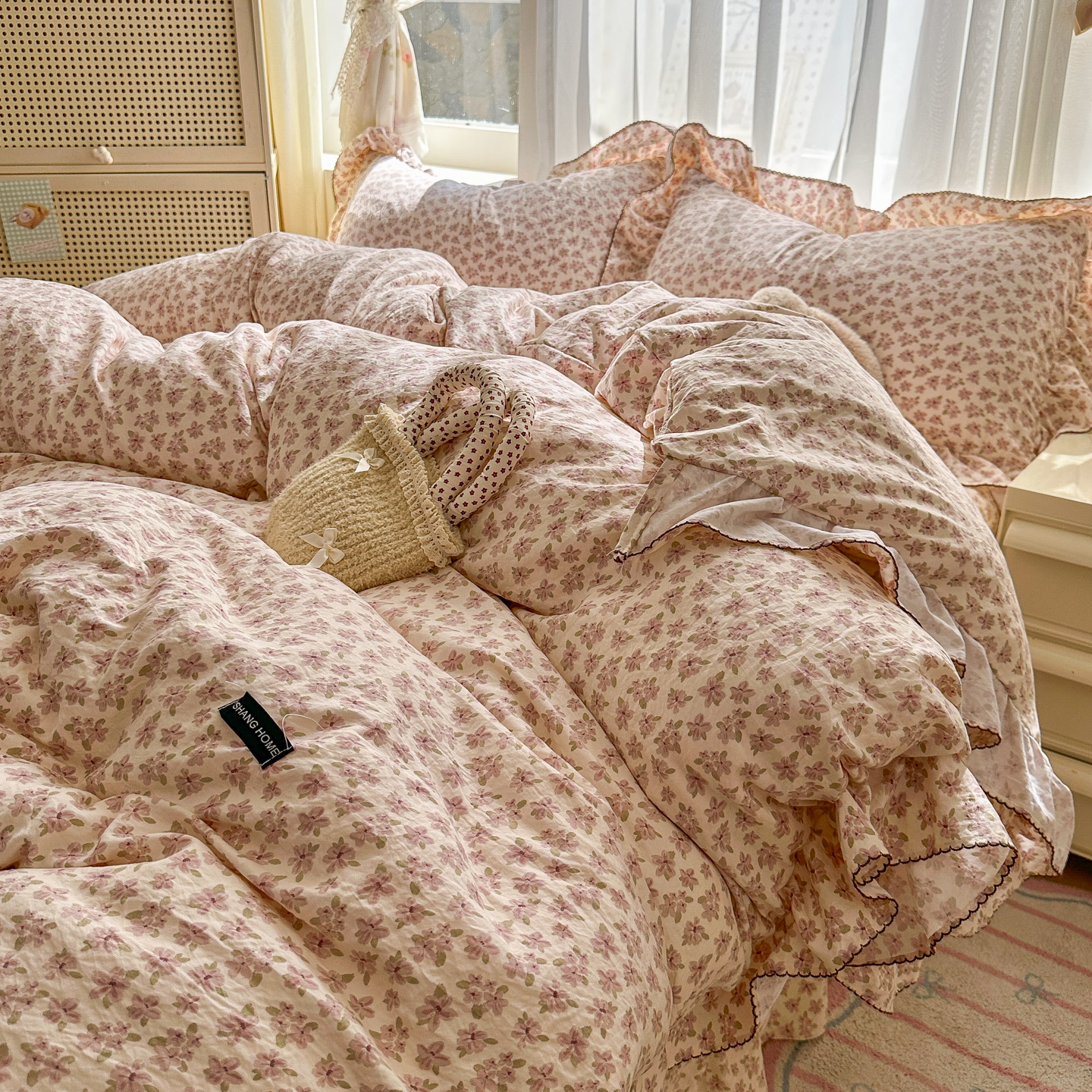 (总)欧尚 2026新款花边床盖四件套,春和,花束,花野,灰樱桃,咖爱心,咖豹纹,咖啡小猫,梨花落,绿爱心,梦境,木马,奶油波点,暖橘枝,暖心,人间草木,田园兔,小女孩,星愿,摇摇马,紫爱心,紫豹纹,紫苏