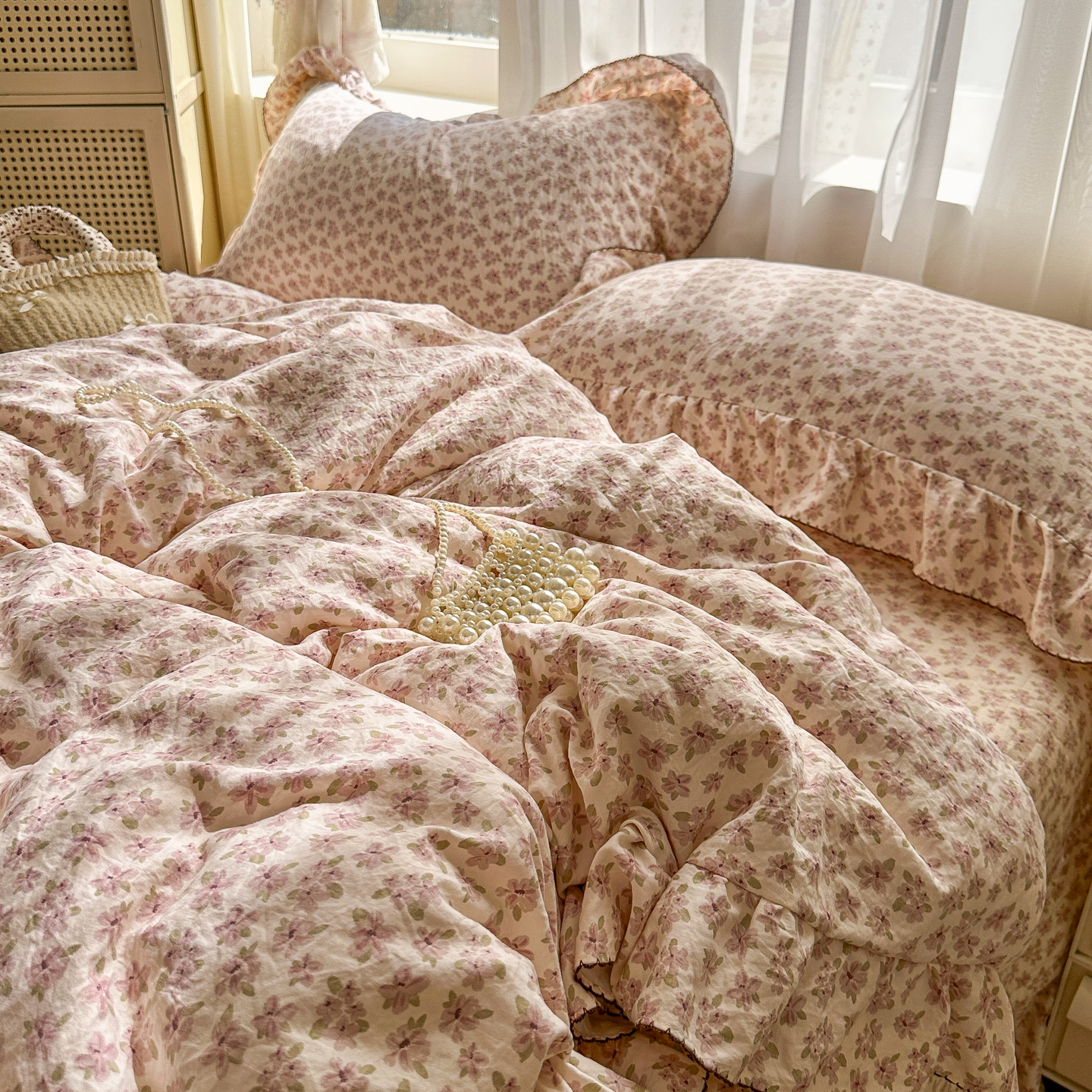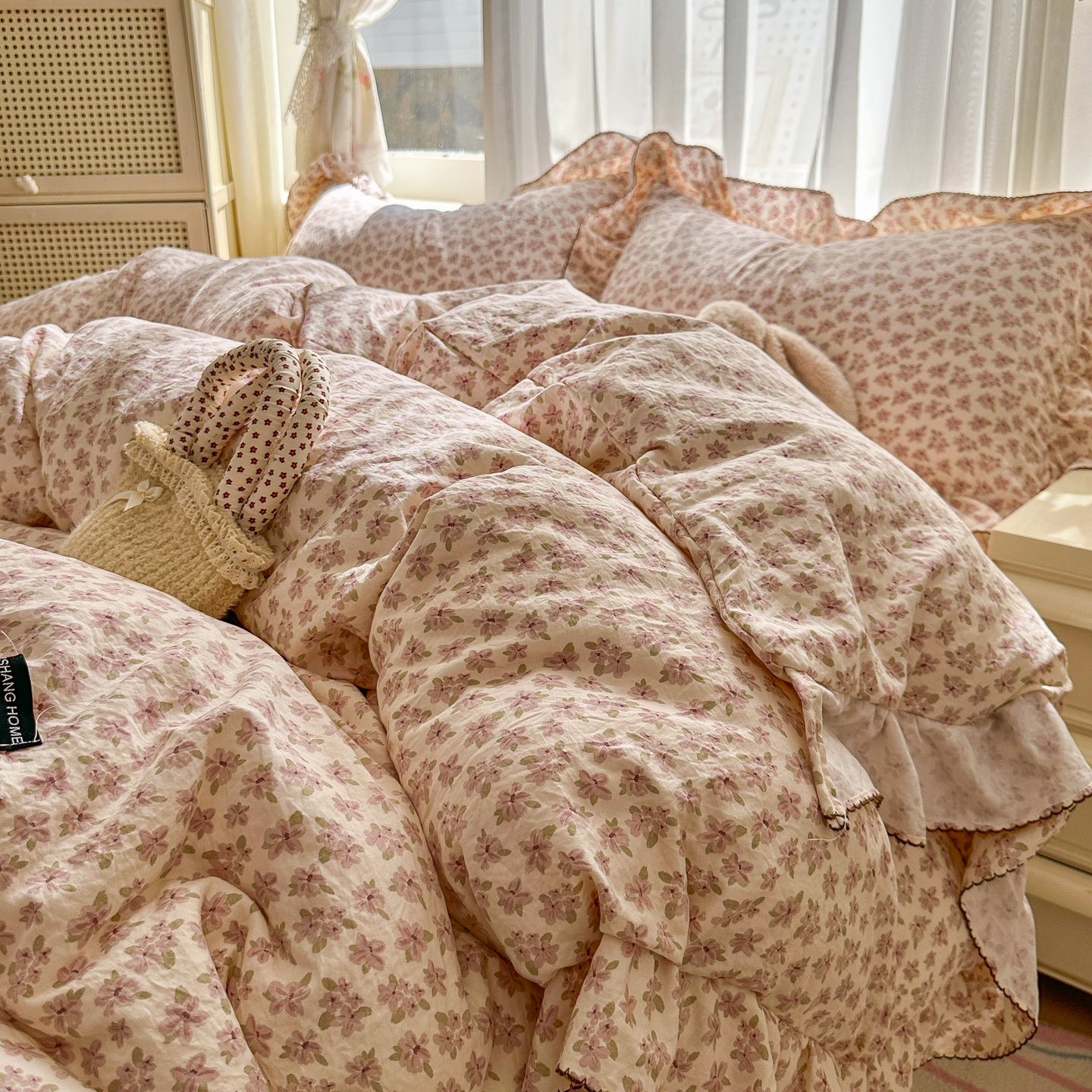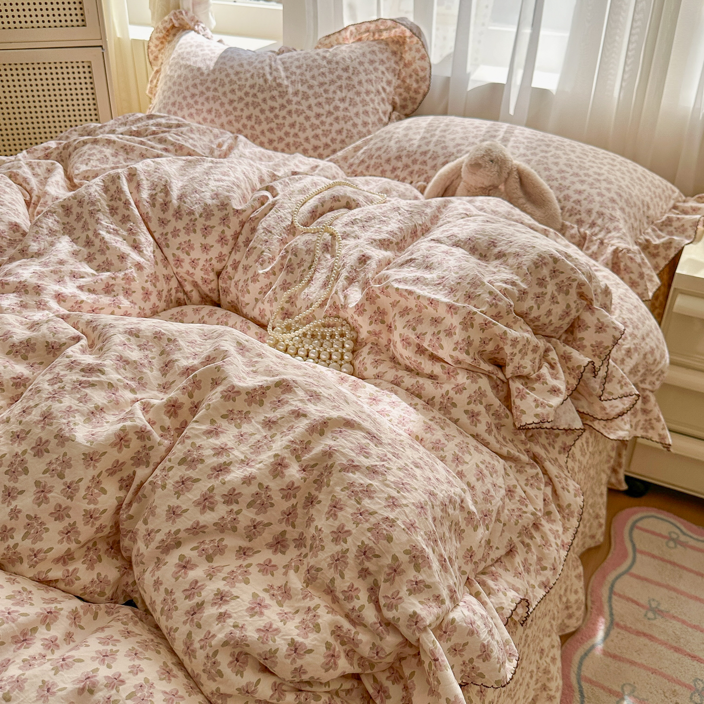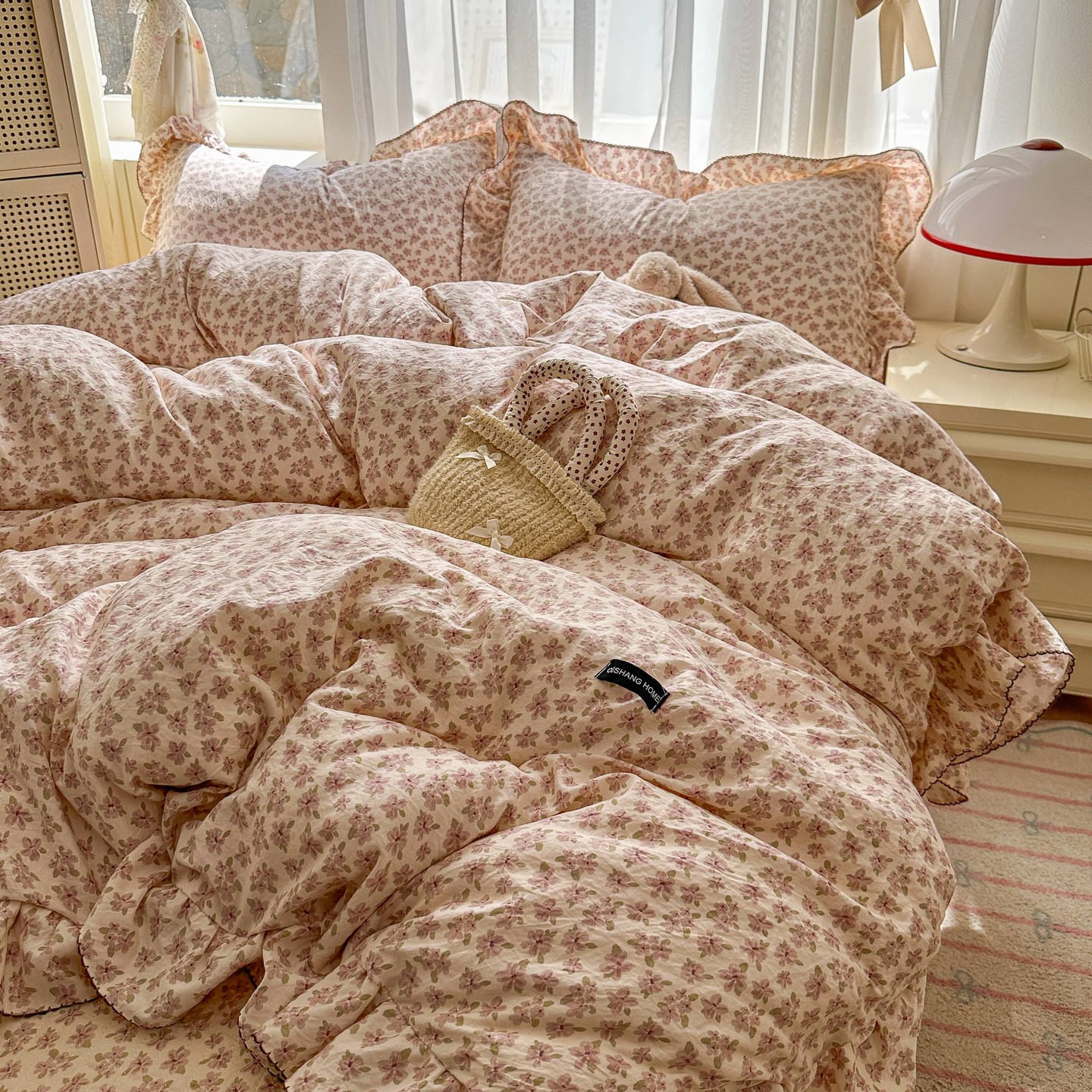 (总)欧尚 2026新款花边床盖四件套,春和,花束,花野,灰樱桃,咖爱心,咖豹纹,咖啡小猫,梨花落,绿爱心,梦境,木马,奶油波点,暖橘枝,暖心,人间草木,田园兔,小女孩,星愿,摇摇马,紫爱心,紫豹纹,紫苏