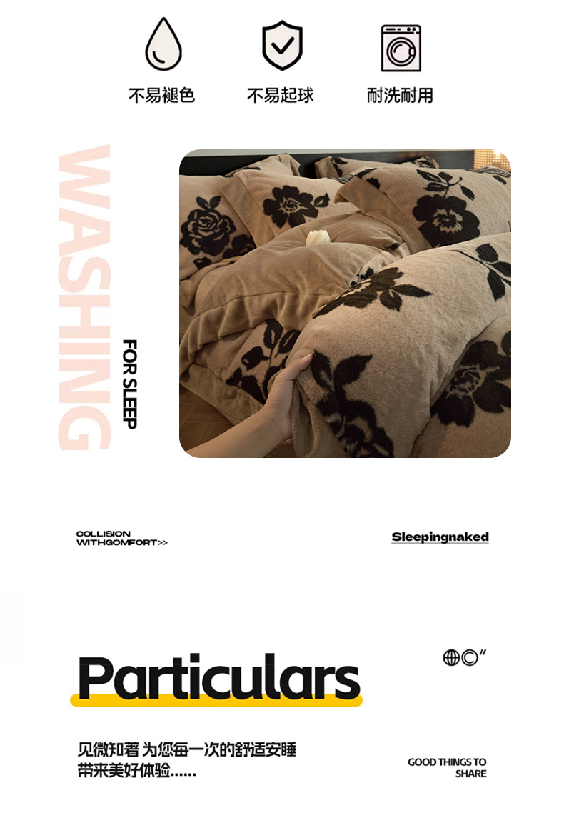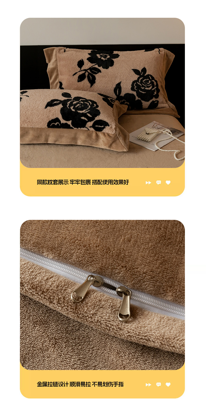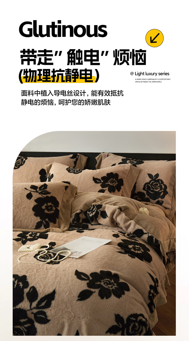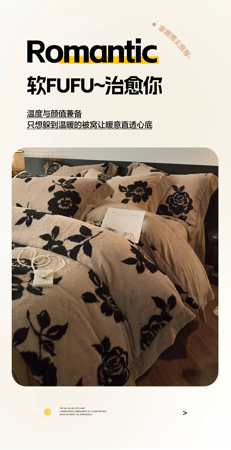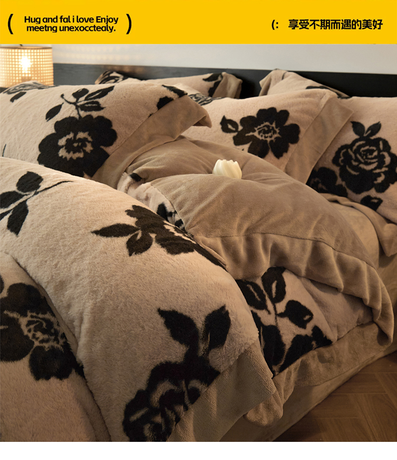 商品名称:启程家纺 2025新款A类加厚兔毛220克牛奶绒拼角四件套 繁花