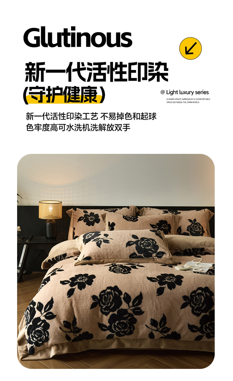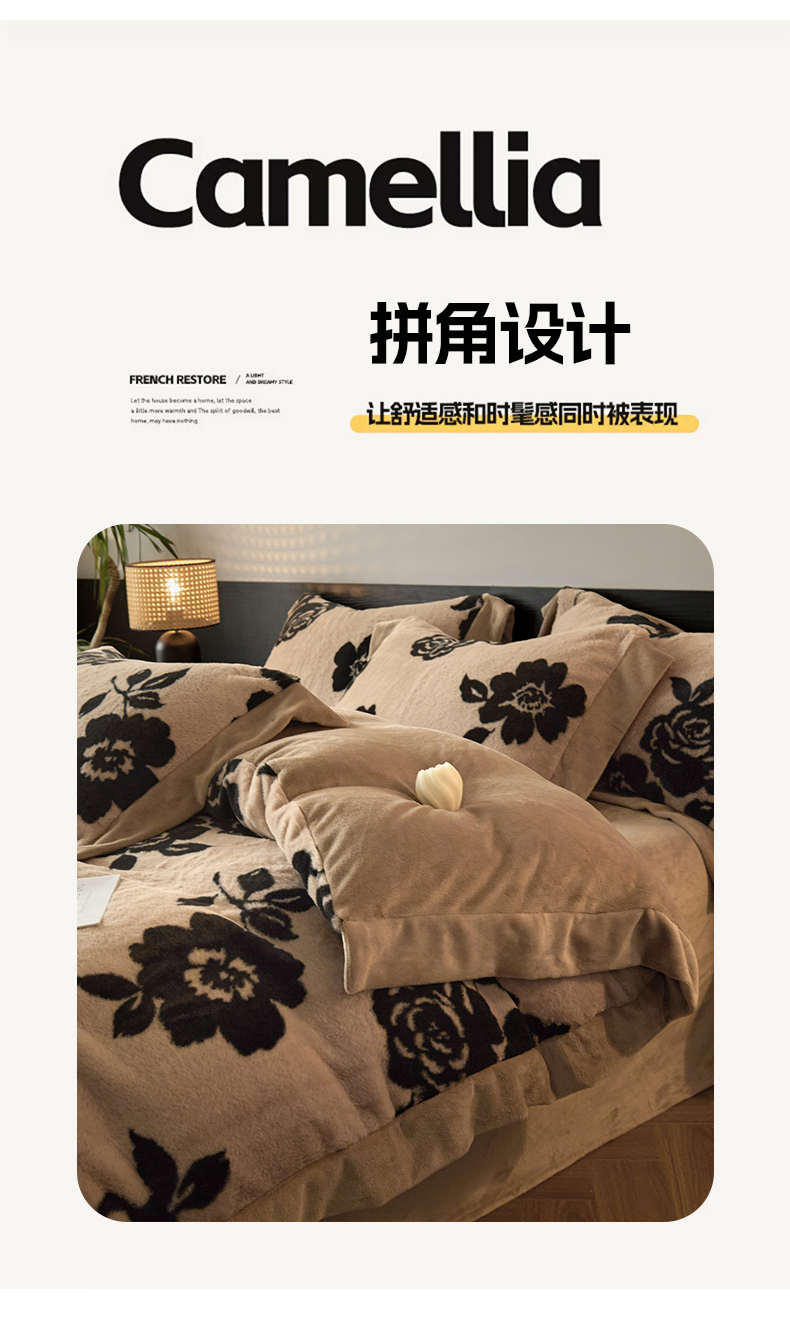启程家纺 2025新款A类加厚兔毛220克牛奶绒拼角四件套 繁花