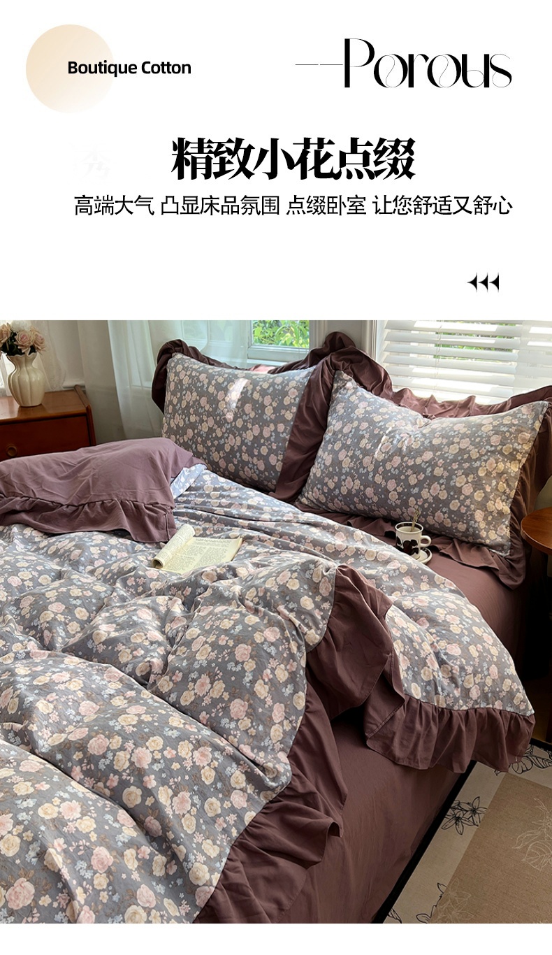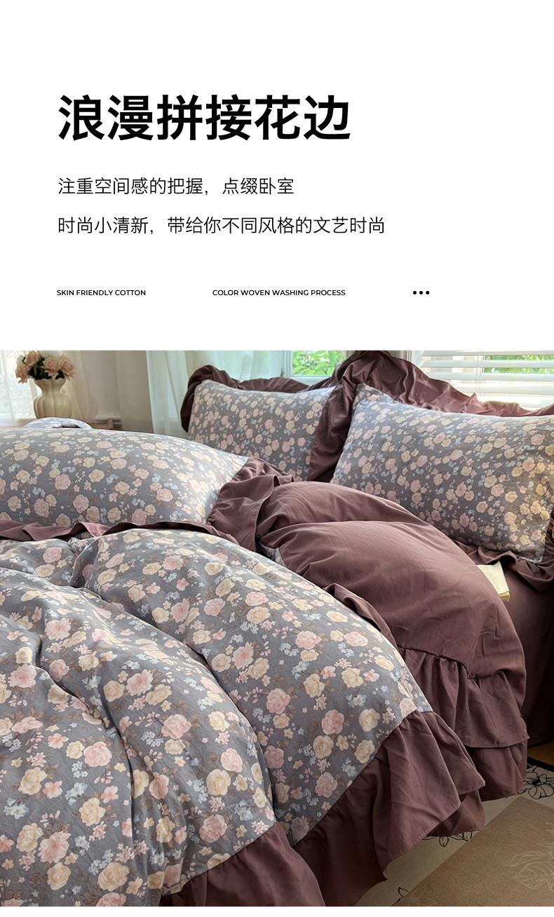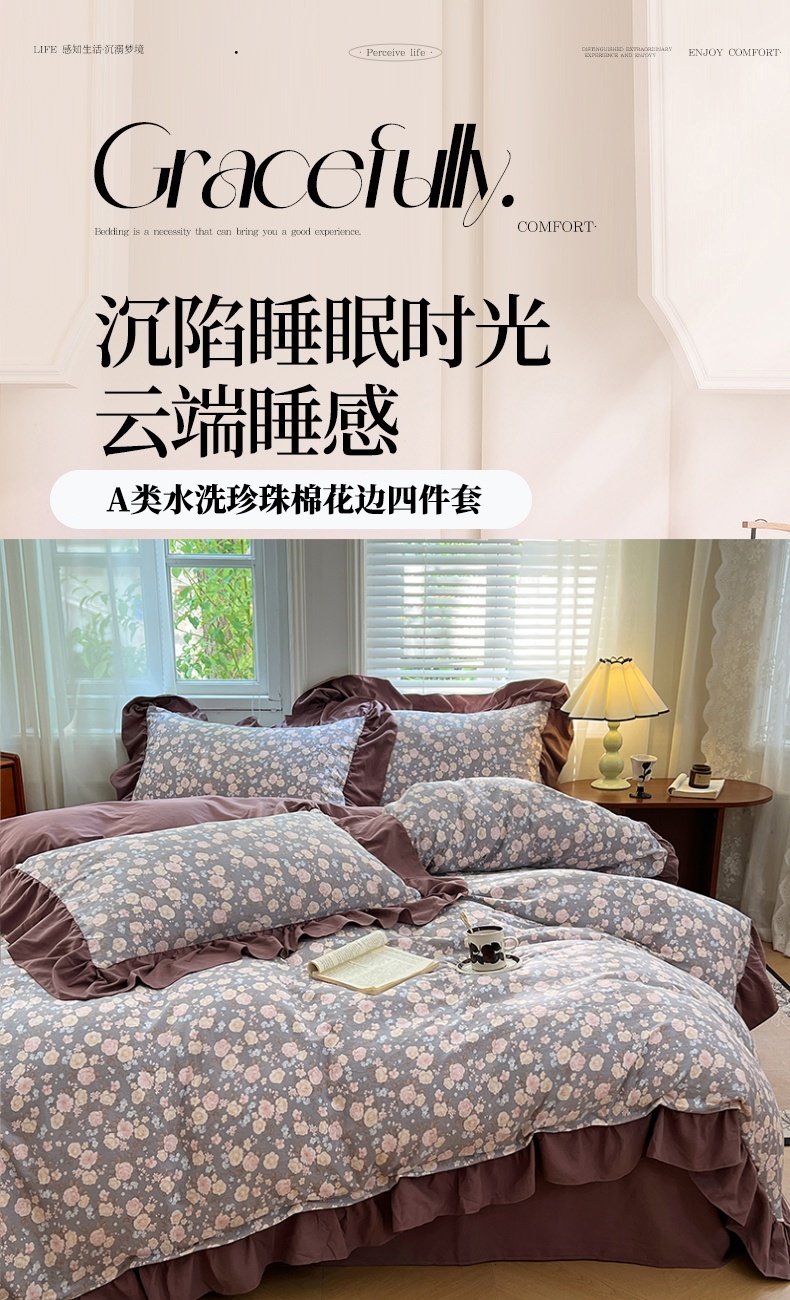商品名称:(总)梦舒羽 2025新款水洗珍珠棉花边四件套学生宿舍套件复古风四件套