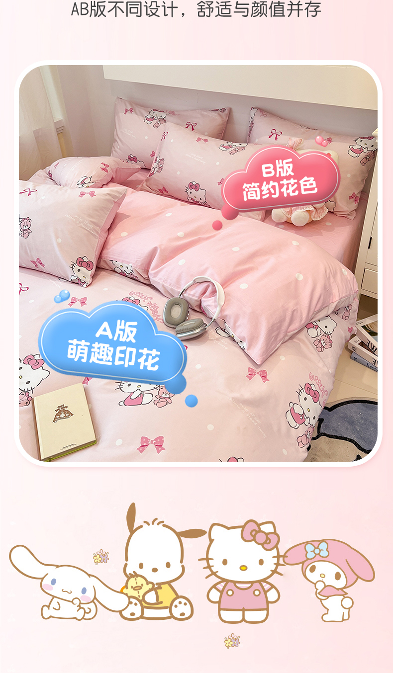 (总)孩子王家纺 2026新款卡通A类全棉纯棉正版授权小版三丽鸥系列四件套(含防伪码)