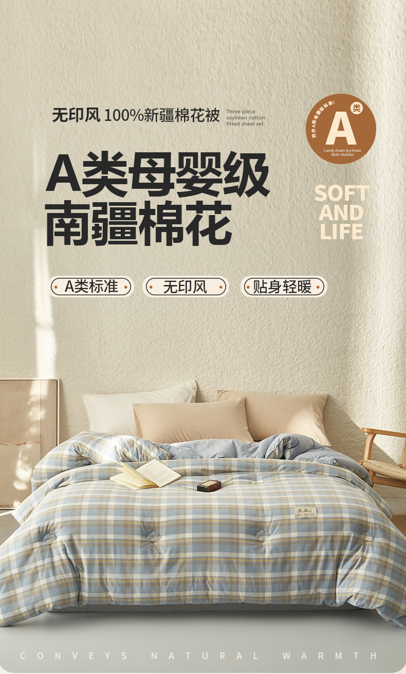• 91家纺网 家纺一手货源 找家纺 子由家居 2025新款无印风100%新疆棉花被被子被芯 无印风-莫妮卡