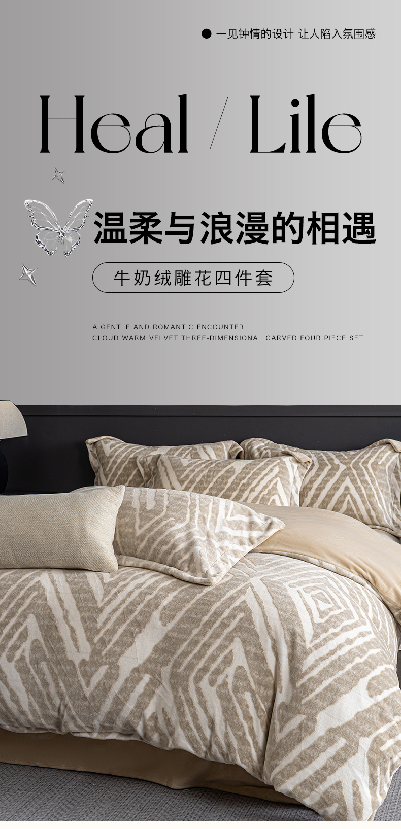 (总)罗优家纺 2025新款牛奶绒雕花绒四件套,蝶光萦绕,冬日暖阳-粉,冬日暖阳-灰,芳华绮丽-粉,芳华绮丽-蓝,花间蝶舞,菱形-棕,芦苇-粉,芦苇-咖,芦苇花,南瓜派对,飘叶-绿,飘叶-紫,时尚格韵,叙境深咖