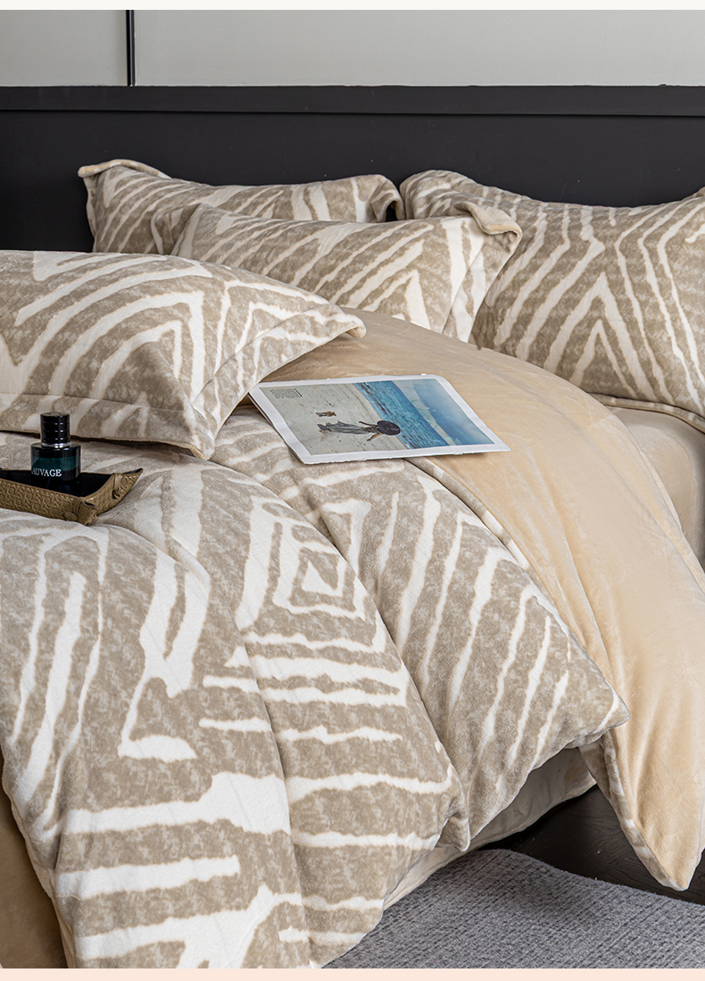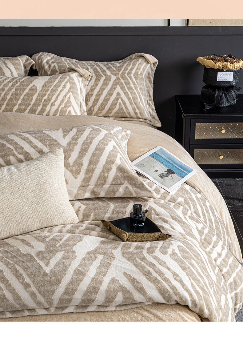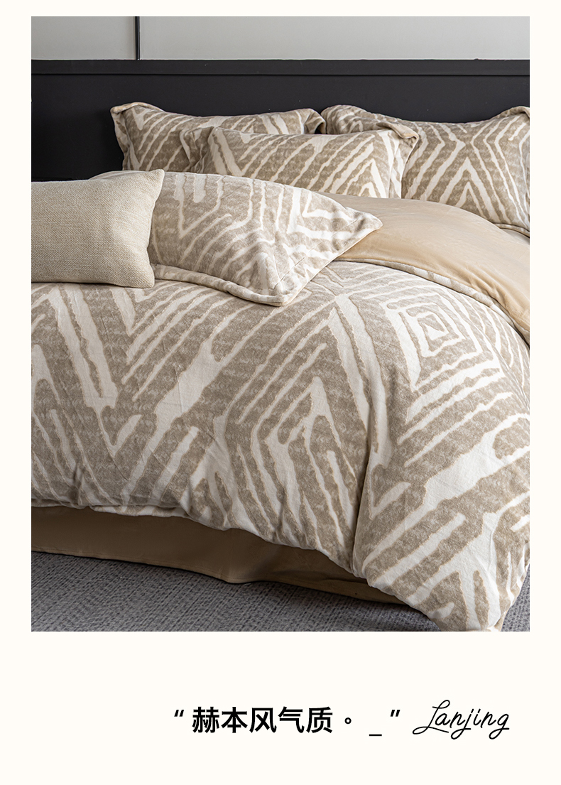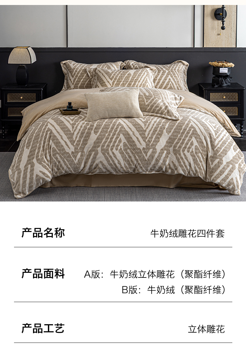 商品名称:罗优家纺 2025新款牛奶绒雕花绒四件套 菱形-棕