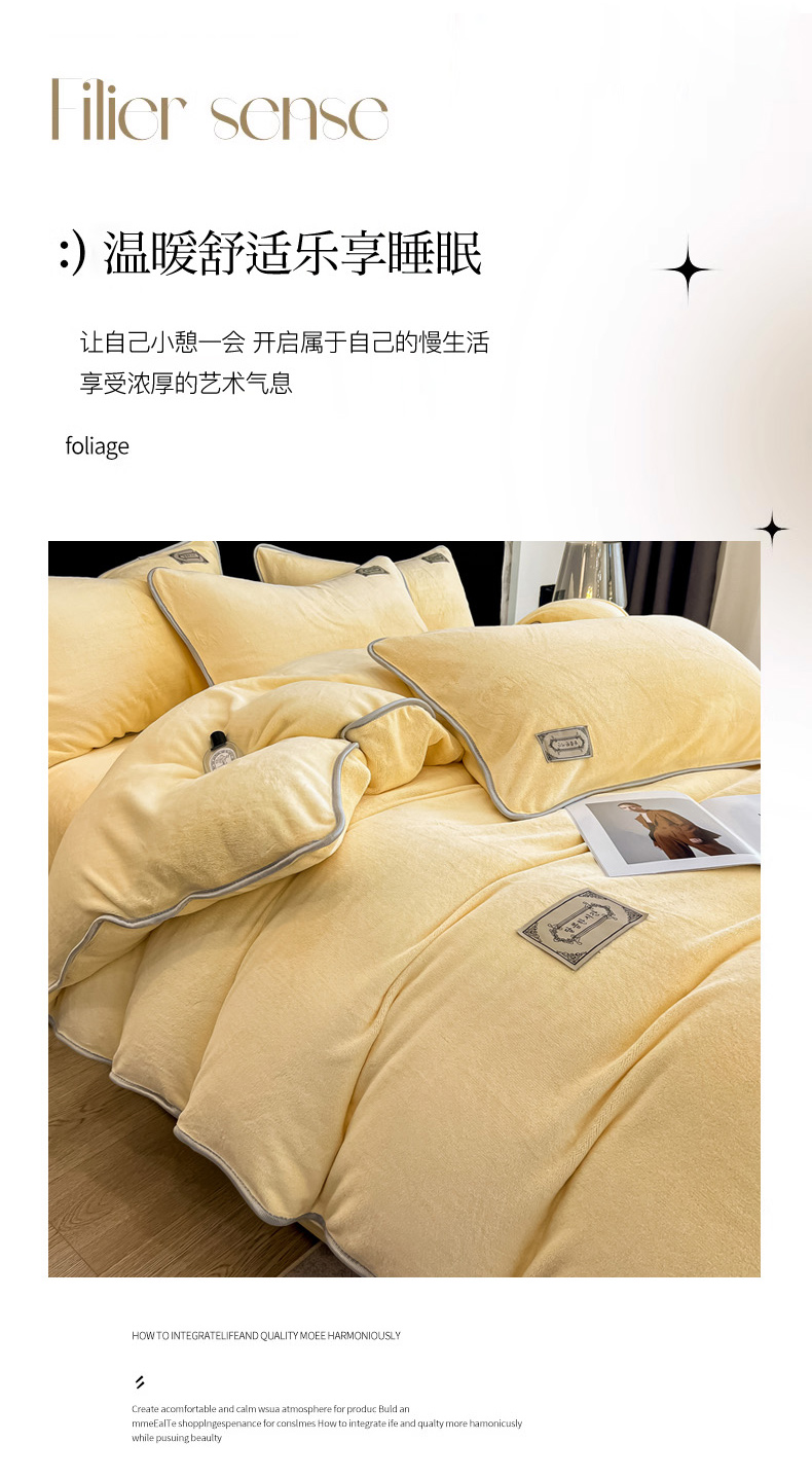 当前位置: 91家纺网 > 商品网购 > 床品套件 > 四件套 > 牛奶绒四件套 > 眠博士 2025新款时尚款牛奶绒加厚保暖四件套四件套 时尚款-鹅黄