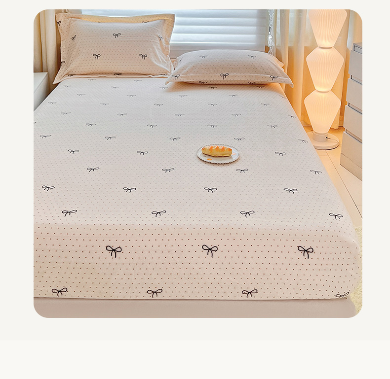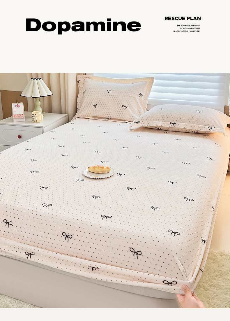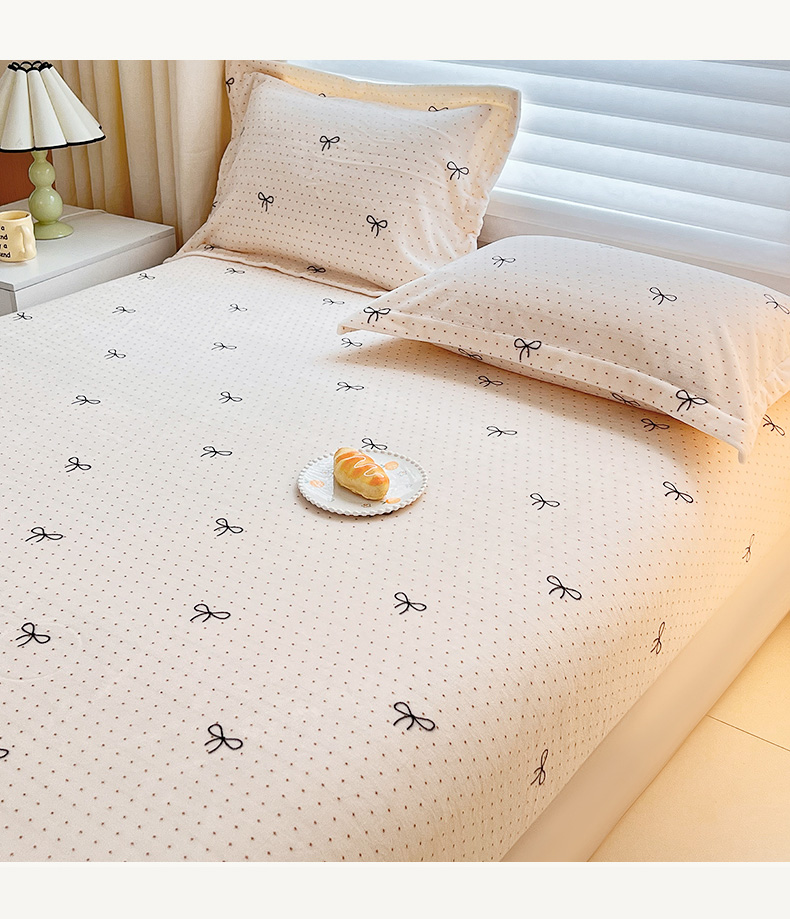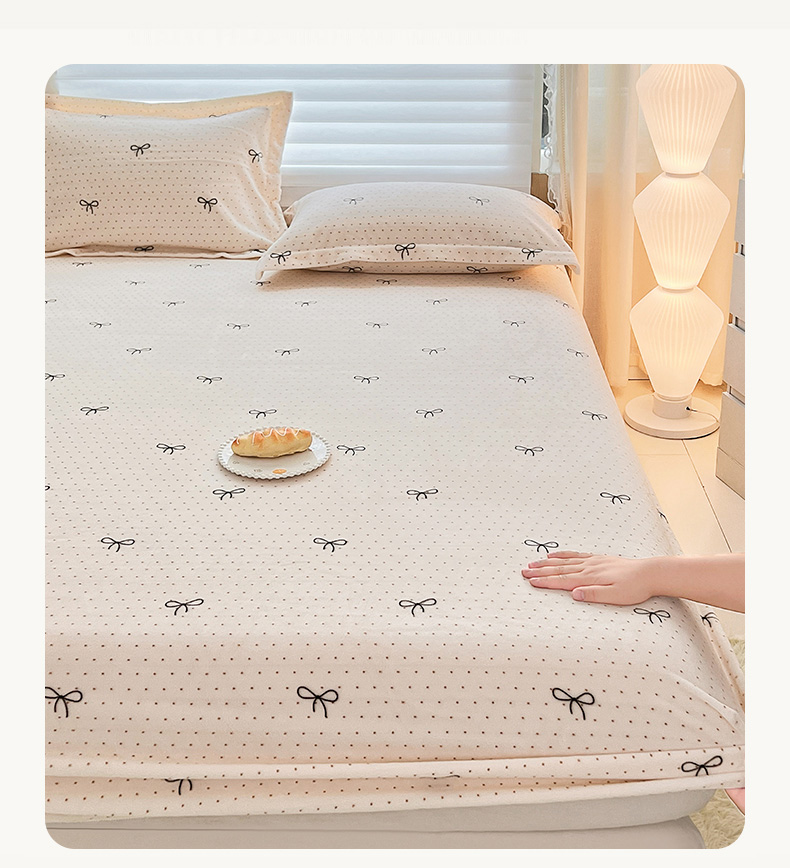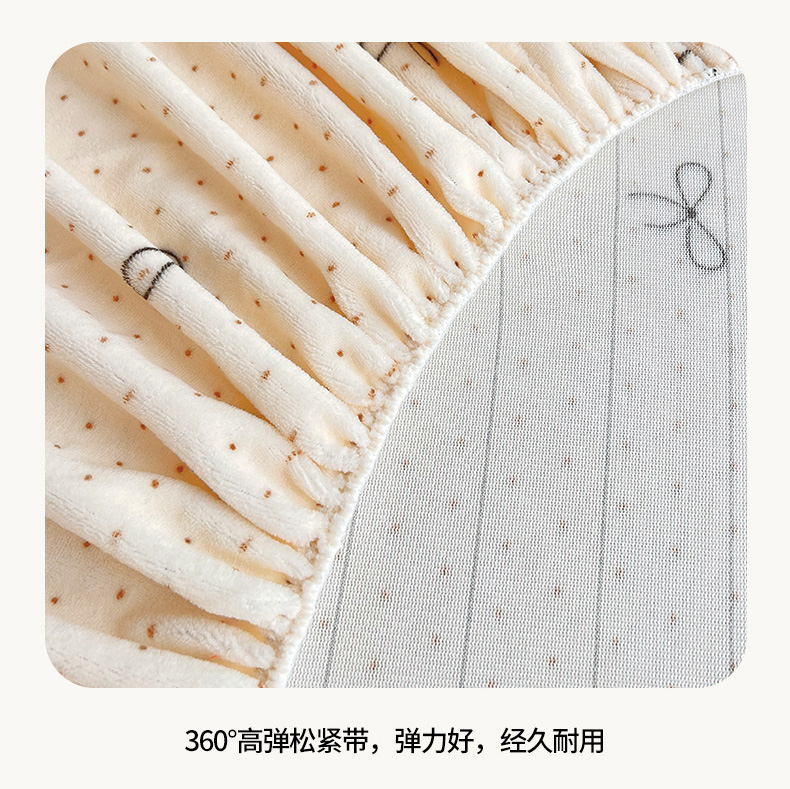锦罗绣 2025新款230克牛奶绒印花单床笠 爱心结