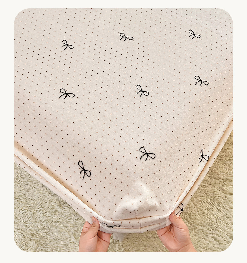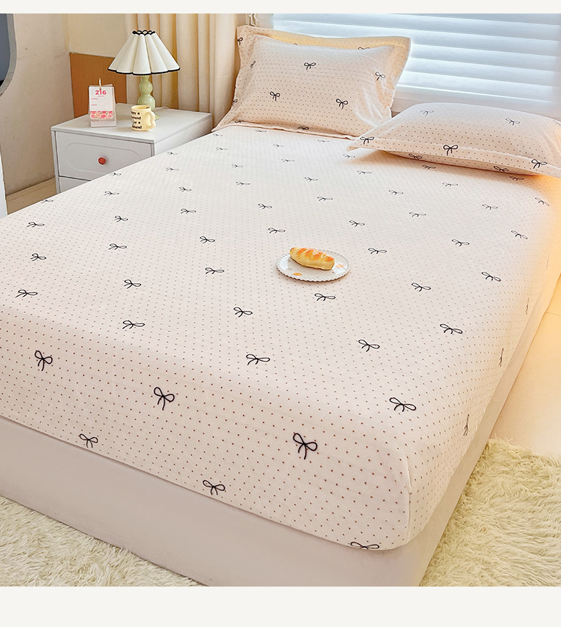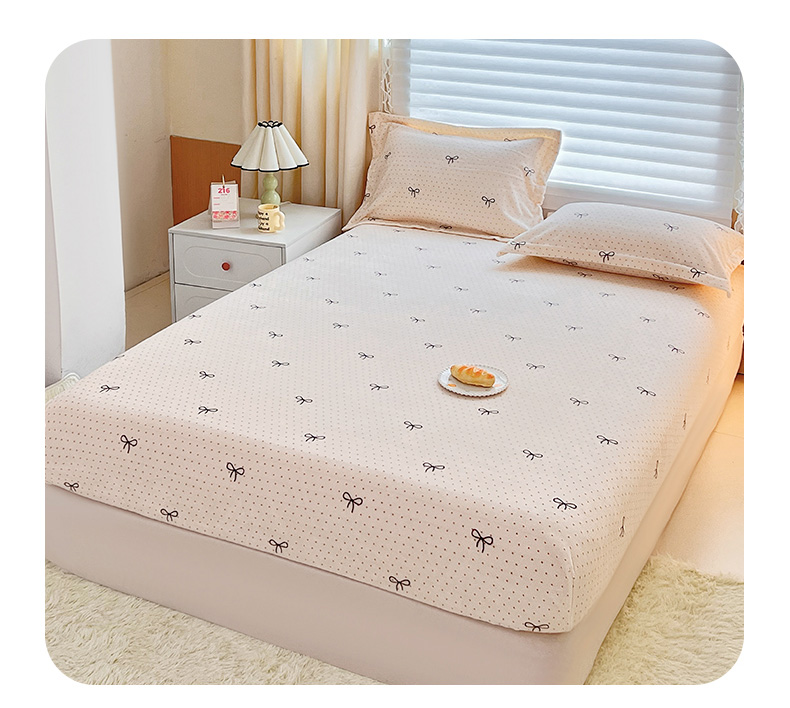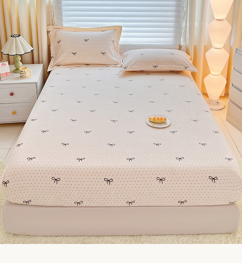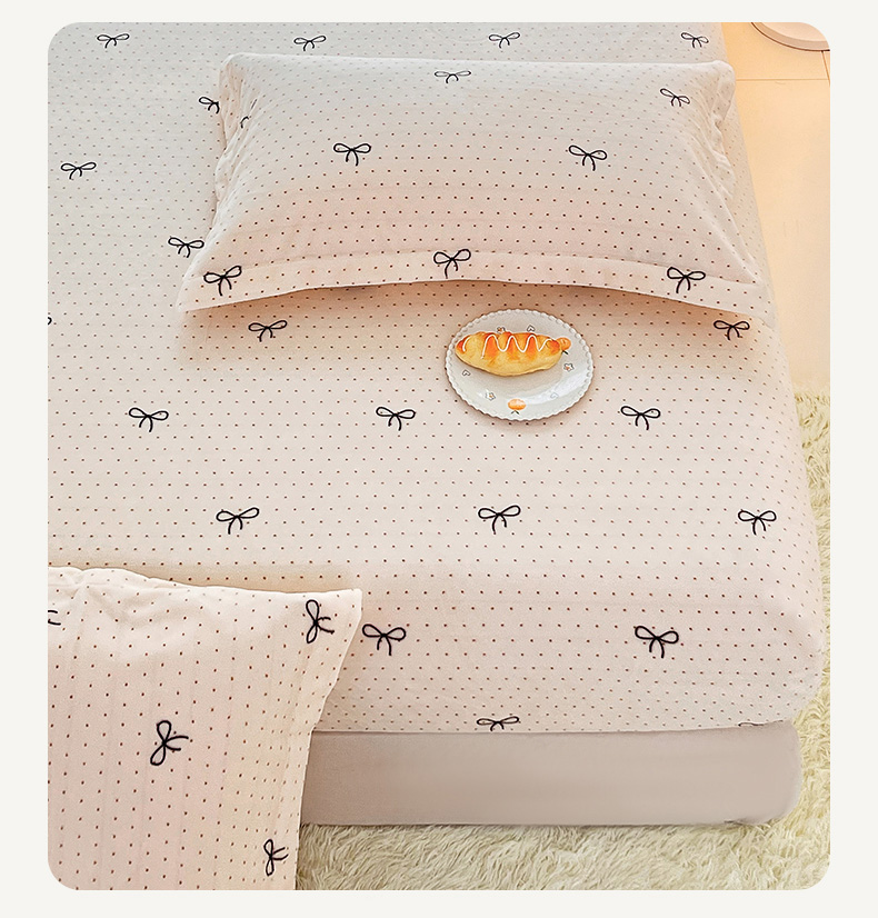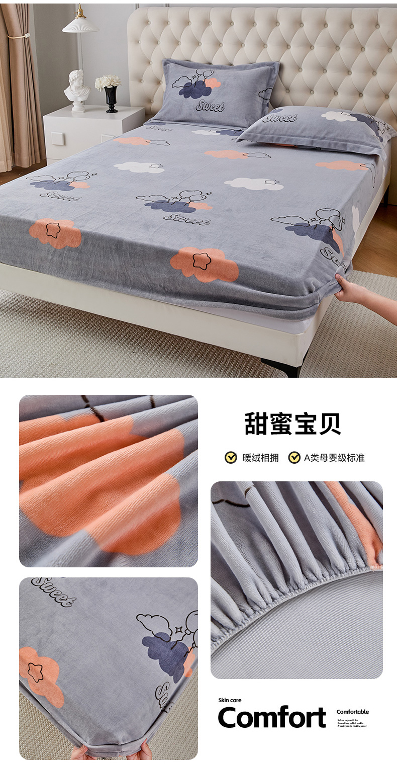 锦罗绣 2025新款230克牛奶绒印花单床笠 爱心结