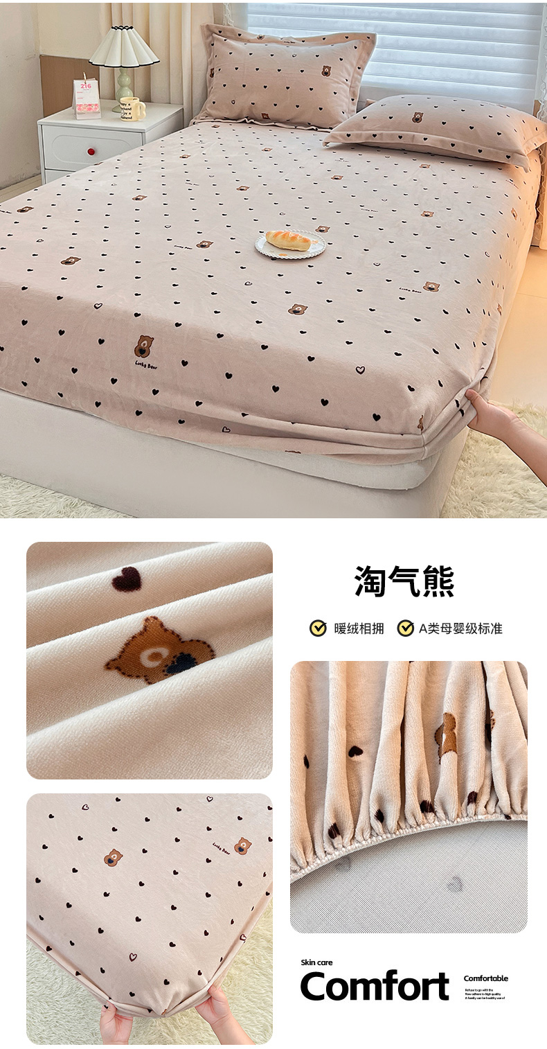 • 91家纺网 家纺一手货源 找家纺 锦罗绣 2025新款230克牛奶绒印花单床笠 爱心结