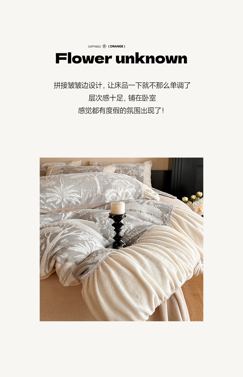 (总)索飞特家纺 2025新款秋冬法式牛奶绒皱皱边雕花四件套,杏花烟雨-灰驼,夏花之梦-粉,夏花之梦-卡其,夏花之梦-兰,杏花烟雨-粉,杏花烟雨-兰