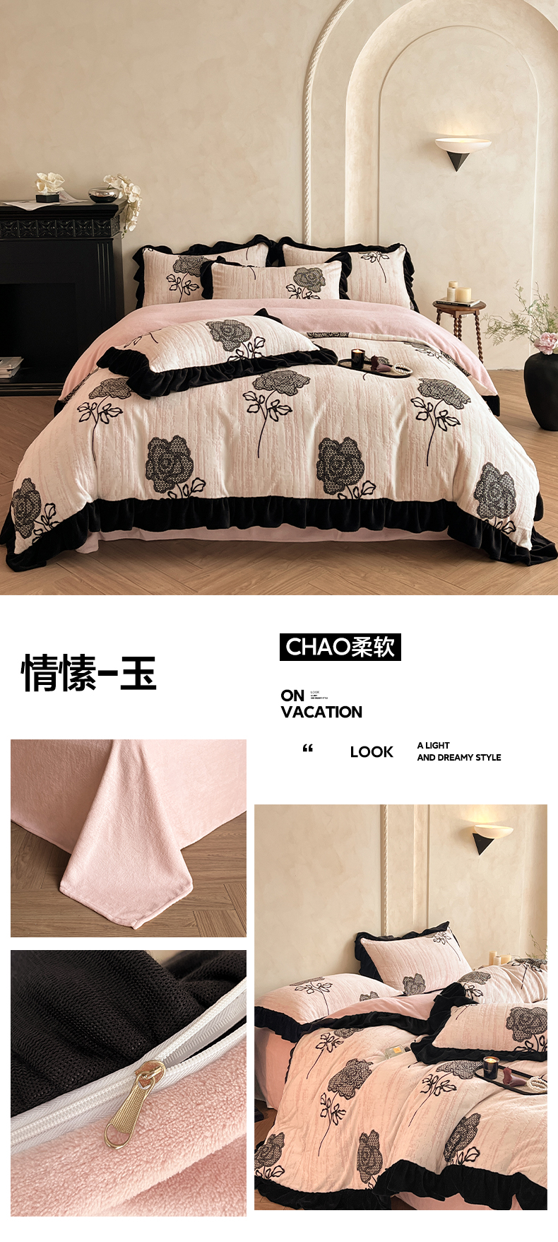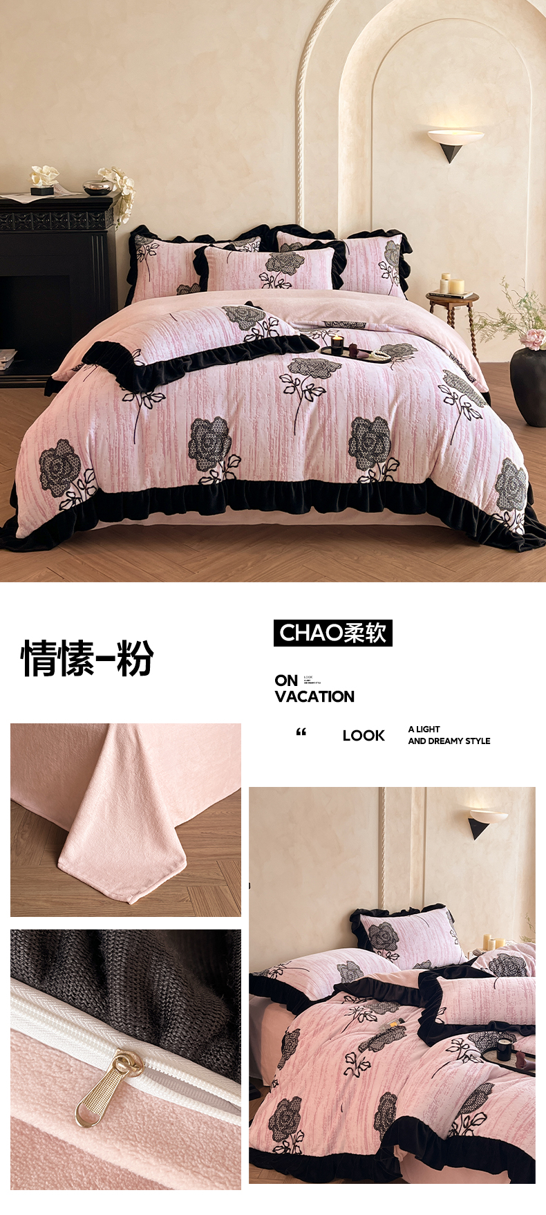 (总)索飞特家纺 2025新款秋冬法式牛奶绒皱皱边雕花四件套,杏花烟雨-灰驼,夏花之梦-粉,夏花之梦-卡其,夏花之梦-兰,杏花烟雨-粉,杏花烟雨-兰